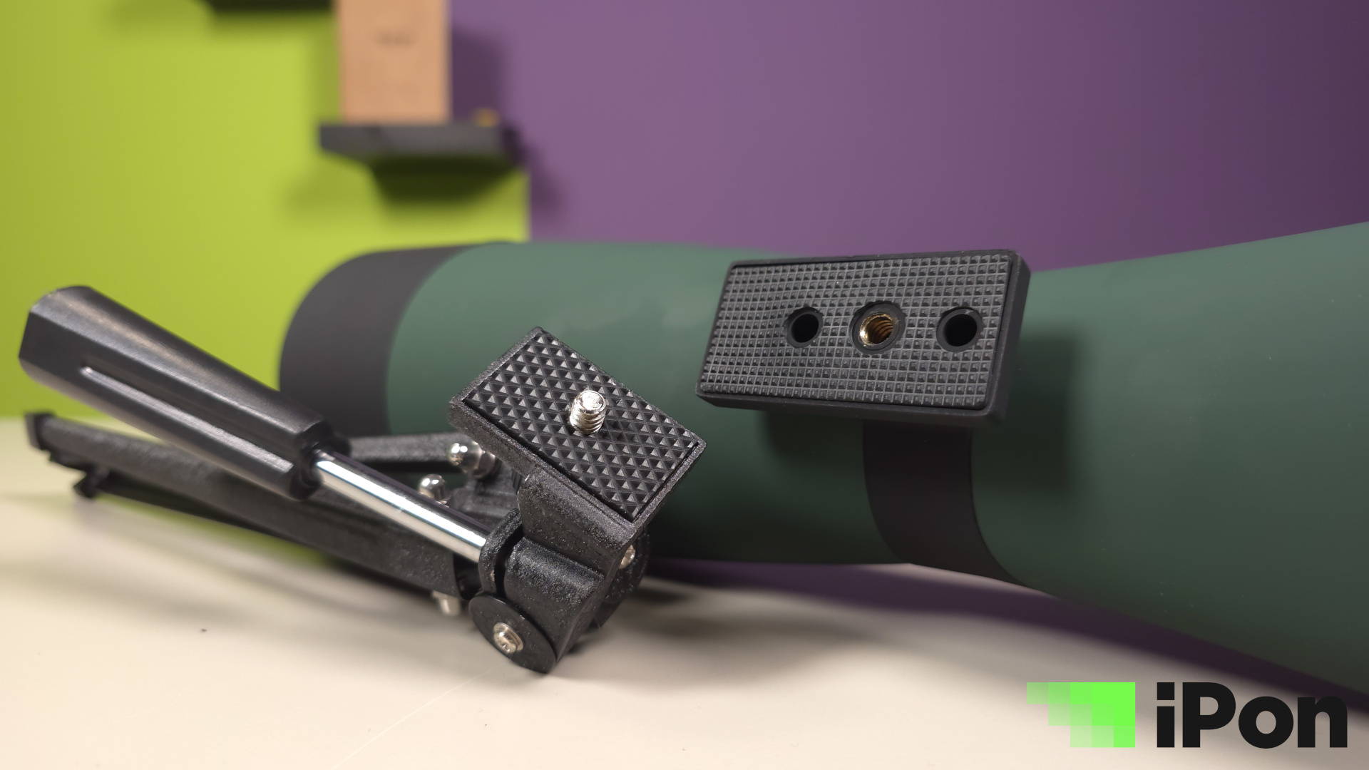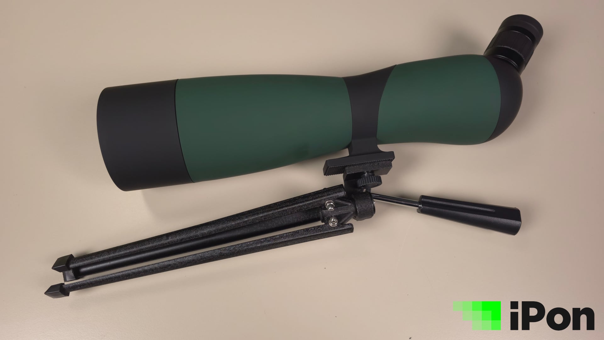 A távcső alján lévő illeszték és a tripod párosítása nemesen egyszerű, a távcső kézben tartása közben a tripodba épített rögzítőcsavart meglepően egyszerű volt betekerni, pár másodperc alatt használatra készen állt. Viszont hamar kiderült egy másik fontos részlet is, ami már jóval fontosabb lehet. Az eszköz lényege a stabilitás, hiszen nagy távolságok esetén egy mm-es elmozdulás és elveszíthetjük a vizsgálat tárgyát. Márpedig a talp túl meredek szögben már nem tudja a helyén tartani a távcsövet, így az tehetetlenül előre vagy hátra billen. Sőt, előre kifejezetten hamar megindul, míg, ha az orrát felfelé irányítjuk, sokkal ügyesebben tartja a pozícióját.