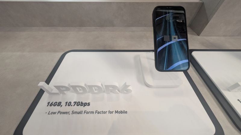 Korábban az a hír járta, hogy az SK hynix rögtön 14,4 Gbps-os tempóra képes LPDDR6 lapkával rukkolhat majd elő, de a barcelonai parketten 10,7 Gbps-os megoldást prezentált.