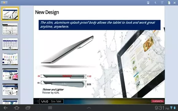 A kiszivárgott anyag egy diasor formájában került napvilágra, így viszonylag részletes képet kapunk a készülő újdonságról. A tervek szerint a Sony eszköze egy teljesen új képernyőméretet hoz magával, ugyanis a megjelenítője 9,4 hüvelykes átmérővel rendelkezik, a felbontása pedig a nagyobb társaihoz hasonlóan, 1280 x 800 képpontos lesz. Az operációs rendszer szerepét az Android 4.0 töltheti be, ám ha a fejlesztések jó ütemben haladnak, akkor a Jelly Bean sem zárható ki.
