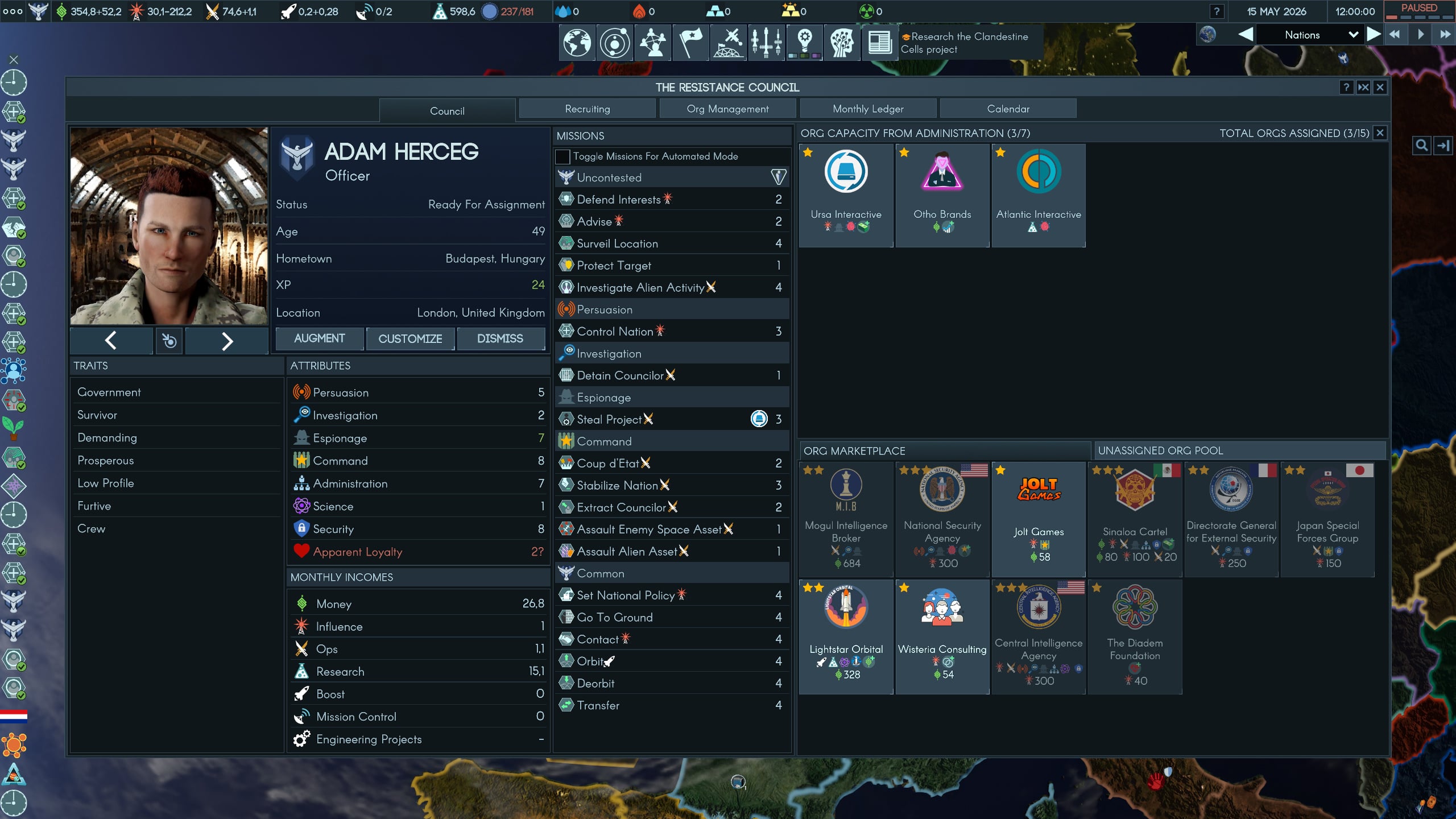Érdekes mód mintha a játék figyelné, hogy honnan játszunk, ugyanis nekem két újraindulásnál is magyar ügynököt adott a két kezdő közé. Ezen ügynökök kinézete, neve amúgy megváltoztatható, de ők azok, akik egy kis RPG elemet is behoznak a képességeik fejlesztésével és a hozzájuk kapcsolt szervezetek kiválasztásával.