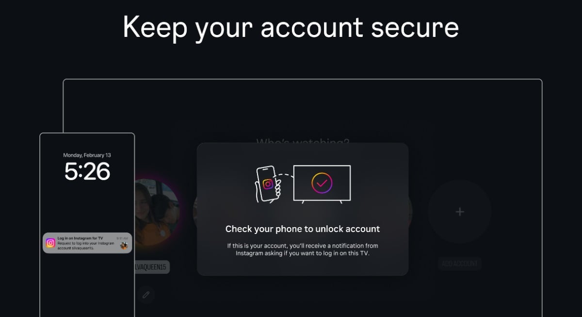 Egy háztartásban általában több embernek van már saját Instagramja, éppen ezért a frissen alkotott alkalmazás gond nélkül képes kezelni akár 5 különböző felhasználói fiókot is, amikbe egy pillanat alatt lehet bejelentkezni. A gördülékeny bejelentkezéshez akár a mobiltelefont is lehet használni. Ezeken felül pedig azt is el kell mondani, hogy az Instagram for TV lehetővé teszi a dedikált tévés fiókok létesítését, ha esetleg nem a szokásos videókat szeretné a felhasználó nagyban pörgetni, hanem más jellegű tartalmakat fogyasztana a tévé előtt ülve.