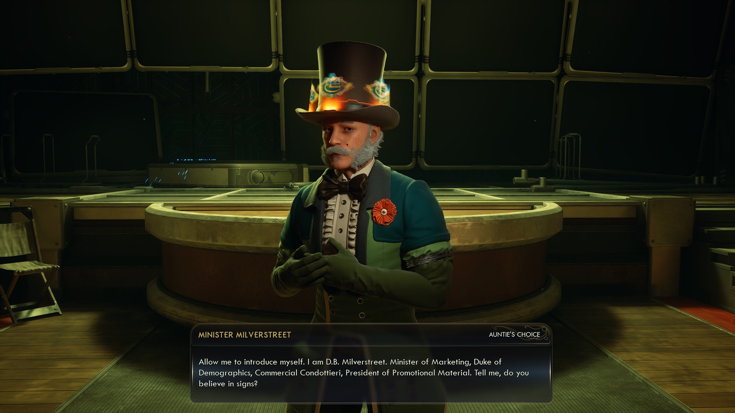 A történet egyik erőssége, hogy a frakciók ideológiáit nem pusztán sablonként használja fel. Az Auntie’s Choice például nem csak a profit hajhászás szimbóluma, hanem a munkásosztály kizsákmányolásának végleteit is elénk tárja és a játék részleteiben foglalkozik azzal a témával is, hogy az örökös növekedés logikája milyen mentalitású emberek számára élhető, és közben kik és mennyien fizetik meg az árát. Mivel azonban ez nem dokumentumfilm, hozzá kell tenni, hogy a frakciók és a fő NPC-k gyakran karikatúra szerűen hozzák a gonoszt.