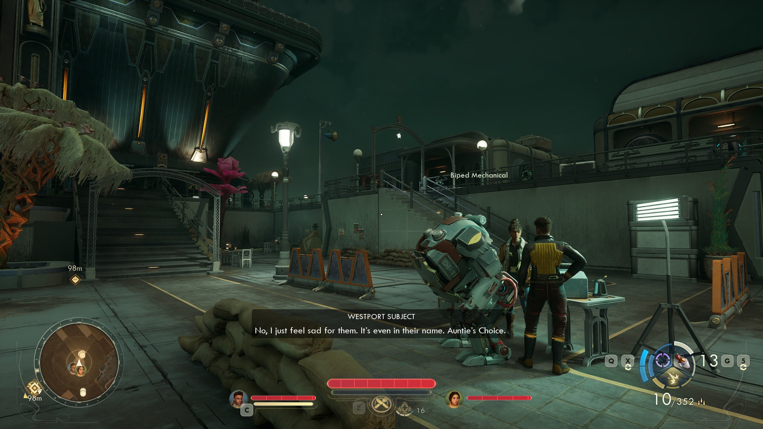 Végső esetben elárulhatjuk, elküldhetjük őket, vagyis a rugalmasság ott van a párbeszédekben, viszont ez is minket szolgál ki, a társak pedig megint sekélyes fogyóeszközzé degradálódnak, mintha csak a legsötétebb kapitalizmusban gondolkodnánk. Lehet próbatételnek szánta ezt a részt is az Obsidian?