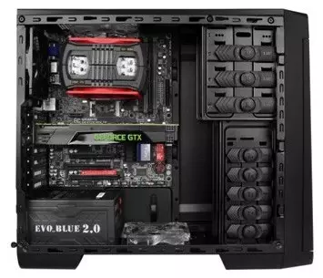 A bővítőhelyek között ezúttal három darab 5,25 colos külső, valamint öt darab 3,5 colos belső öblöt találunk - ezek mind-mind szerszámmentesen szerelhetőek. A 3,5 colos belső bővítőhelyek 2,5 colos meghajtókat is fogadnak, sőt, rajtuk kívül még egy 3,5 colos külső bővítőhely is jelen van a kínálatban. A normál ATX formátumú tápegységeket fogadó számítógépházban 155 milliméter magas processzorhűtő is elfér, a videokártyák pedig 320 milliméternyi hellyel gazdálkodhatnak.