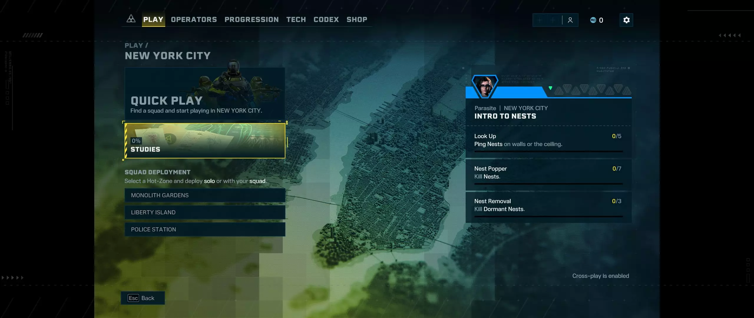 Ez a gyors kiképzés nem vesz igénybe öt-tíz percnél többet. Ezután kerülünk vissza az igazi főmenübe, ahol láthatjuk, hogy megnyílt az első nagyobb pályarész, New York. Itt két opciónk van: vagy rákattintunk a quick startra, ami összerak minket ismeretlenekkel egy csapatba, vagy mi választhatjuk ki New York-on belül a három helyszín egyikét, ahol szeretnénk indítani az első bevetésünket a sok közül.