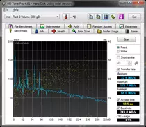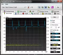 Az apró SSD a gyakorlatban elég jól teljesít, de a RAID tömbös kialakítás miatt olykor be-becsúsznak érdekes mérési eredmények mind nála, mind pedig a merevlemez esetében, amely a 80-85 MB/mp-es maximumnál nem nagyon tud többet önmagában, nem is értjük, miért nem tett a gyártó egy gyorsabb HDD-t az SSD mellé.