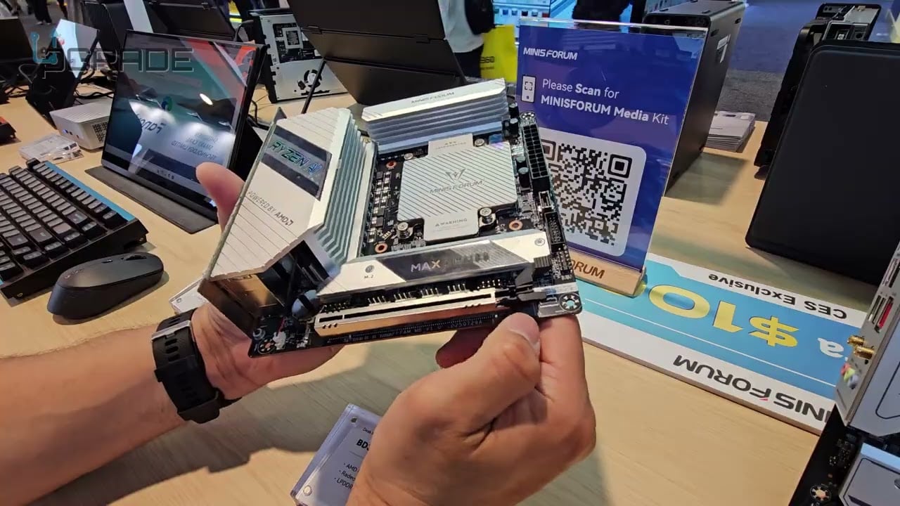 A bemutatott alaplapon a RYZEN AI Max+ 395-ös modell foglalt helyet, ami 16 maggal és 32 szállal gazdálkodik, természetesen ZEN 5 alapokra támaszkodva, de a kínálat része még egy 40 CU tömbbel ellátott, Radeon 8060S típusú iGPU, illetve egy 50 TOPs teljesítményt nyújtó NPU is. A SoC egység maximum 128 GB-nyi fedélzeti memóriát foghat munkára, ami már nagyobb LLM-ek futtatására is lehetőséget adhat.