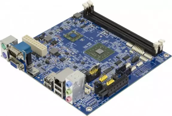 Az alaplapon két darab SATA 3 Gbps-os, valamint egy PCI Express x4-es port bújik meg. A hátlapi kivezetések között megtaláljuk a HDMI és D-Sub videó kimeneteket, egy soros portot, a szokásos PS/2-es csatlakozókat, valamint négy darab USB 2.0-s portot is, és természetesen a kínálatból a Gigabites Ethernet port és az audió vezérlő 3,5 mm-es jack audió kimenetei sem hiányoznak. Az alaplap tüskesorok formájában kétcsatornás 24-bites LVDS portot (háttérvilágítás-vezérléssel), további három COM portot, négy USB 2.0-s csatlakozót, egy USB 2.0-s eszköz portot, SPDIF kimenetet és SMBus csatlakozót is kínál.