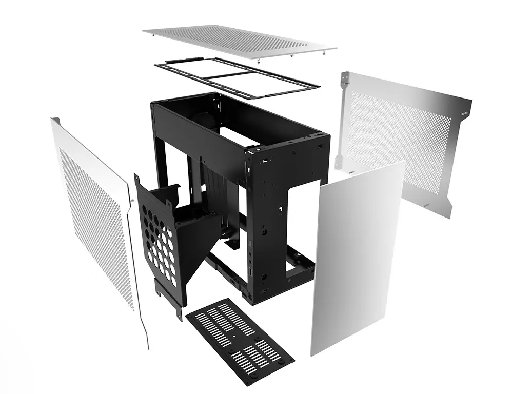 Az SFX és SFX-L formátumú tápegységeket fogadó Mini-ITX ház 326 milliméter mély, 244 milliméter magas és 140 milliméter széles. Alapját acélváz adja, erre homokszórt és eloxált fekete alumínium paneleket szereltek, ezeket pedig el lehet távolítani, így a hosszú videokártyát a ház előlapja felől kényelmesen beilleszthetjük a helyére.
