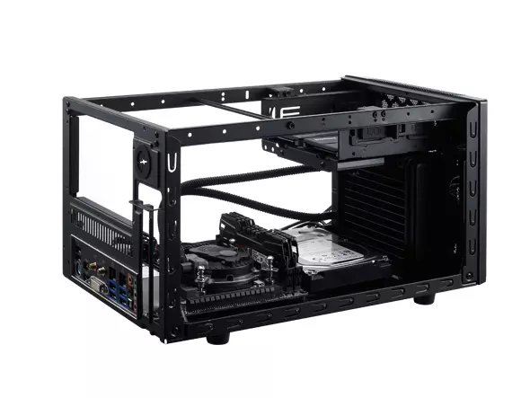 Az újdonság egy darab 5,25 colos, maximum 3 darab 3,5 colos és maximum 5 darab 2,5 colos adattároló elhelyezésére ad lehetőséget. Ha három darab 3,5 colos HDD-t kívánunk a házba szerelni, akkor az 5,25 colos bővítőhelyről le kell mondanunk. Ugyanez az helyzet, ha 5 darab 2,5 colos adattárolót szeretnénk elszállásolni az Elite 130-ban: ekkor a három darab 3,5 colos bővítőhelyet vehetjük igénybe, plusz a ház oldalán és a ház alján is elrejthetünk egy-egy 2,5 colos meghajtót.