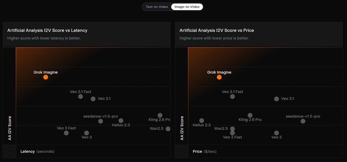 A cég beszámolója szerint a Grok Imagine árban és késleltetésben is az első helyen áll, megelőzve egy hajszállal a Google által fejlesztett Veo 3 és Veo 3.1 Fast modelleket, és messze lekörözve az OpenAI által felvonultatott Sorát. A vállalat az új mesterséges intelligencia modellel elindítja a Grok Imagine API-t is. Ez magában foglalja majd a hanggal kombinált videókat és a szerkesztési lehetőségeket egyaránt. Az API szinte mindent támogat, amit a Grok biztosít a felhasználók számára, még többet is ki lehet belőle hozni az xAI szerint.