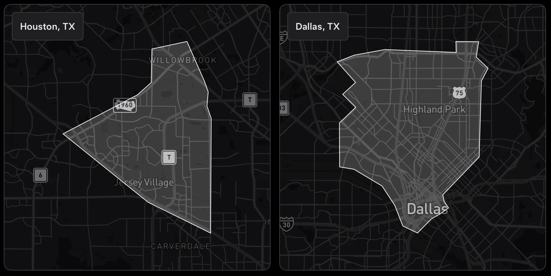 Egyelőre nagyon be lesz szorítva az új városokban a Robotaxi, de ez nem meglepő, általában így szokott indulni a bevezetés. Jelenleg Austinban fedi le a legnagyobb területet a Tesla, ott már 634,5 km2-en járnak az önvezető taxik, miközben mindössze 51,8 km2-rel indult el annak idején. Houstonban most egy 64,7 km2-es területet jelöltek ki a szolgáltatásnak, Dallasban pedig többnyire a Highland Park városrészben lehet egyelőre közlekedni.