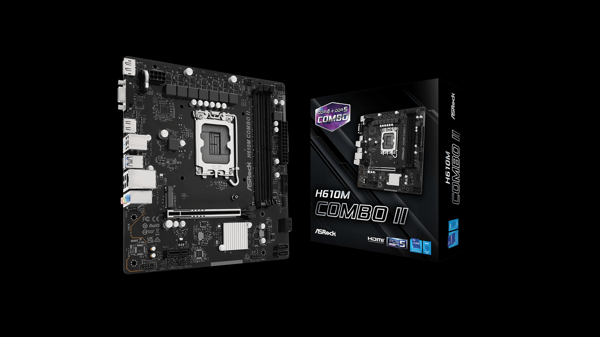 Az ASRock csapata másképp közelítette meg a kérdést, a mérnökök olyan speciális alaplapot fejlesztettek, amire nemcsak DDR5-ös, hanem DDR4-es memóriafoglalatok is kerültek, az első olyan példányt éppen nemrégiben mutatták be. Azon az alaplapon, vagyis a H610M Combo névre keresztelt modellen még két darab DDR4-es és négy darab DDR5-ös memóriafoglalat lapult, viszont készült egy újabb verzió is H610M Combo II névvel, ami hatról háromra csökkenti az elérhető memóriafoglalatok számát. Ez úgy oszlik meg a két memóriaszabvány között, hogy egy DDR4-es és két DDR5-ös modul használatára nyílik lehetőség, ami azt is jelenti, DDR4 módban be kell érnünk az egycsatornás memóriatámogatás korlátaival.