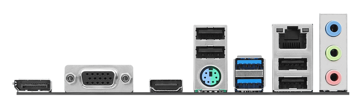 Az új alaplap hátoldalán az említett videó kimentek társaságában találunk még 3 darab 3,5 milliméteres Jack Audió portot, két darab USB 3.2 Gen1-es és négy darab USB 2.0-s portot, egy PS/2-es portot, valamint egy RJ-45-ös csatlakozót is. Alaplapi kivezetések formájában további két darab USB 3.2 Gen1, valamint további két darab USB 2.0-s port érhető el. A sorból nem hiányzik a TPM tüskesor sem, a BIOS pedig egy 128 Mb-es EEPROM chipre került.