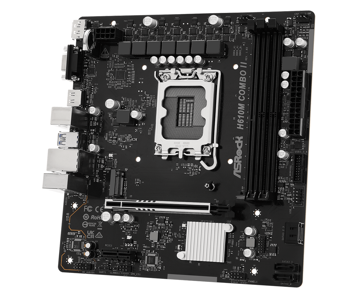 Az LGA-1700-as tokozással rendelkező processzorok számára készített alaplap egyébként microATX formátumban érkezik, tápellátás terén 6+1+1 fázissal rendelkezik, felszereltsége pedig átlagos. Kapunk egy PCI Express 5.0-s slotot, ami x16-os sávszélességgel dolgozik és akár PCI Express alapú SSD is helyet kaphat benne, amiről a rendszer el is indulhat (PCIe NVMe Boot Mode). Rajta kívül jelen van még a fedélzeten egy PCI Express 3.0 x1-es slot is, ami a PCH-hoz kapcsolódik, míg az adattárolókat egy PCI Express 3.0 x4-es M.2-2280-as slot várja, illetve négy darab SATA 6 Gbps-os port is rendelkezésre áll.
