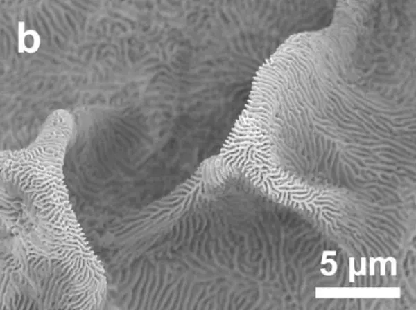 Spinner elektronmikroszkóppal vizsgálta meg a kígyó pikkelyeit, és megállapította, hogy a fekete részeken valóban más a felszín szerkezete. A fekete szín nem pusztán sötét pigmentek eredménye, hanem egyben strukturális hatás is: a fekete pikkelyek felszínének minden négyzetmilliméterét nagyjából 1900 darab, 30 mikrométer magas kiemelkedés borítja. Még közelebbről szemügyre véve a felületet, kiderült, hogy ezeket a kis „hegyormokat” még kisebb kiemelkedések bonyolult hálózata borítja, amelyek az emberi ujjlenyomathoz hasonlatos mintázatba állnak össze, és maguk is további apró elemekre bonthatók. Amikor fény éri ezt a felületet, a beeső sugár addig verődik oda-vissza az apró felszíni egyetlenségekről, amíg a sötét színű pigmentek szinte teljesen el nem nyelik azt. Végeredményben a beérkező fény kevesebb mint 11 százaléka verődik vissza a környezet felé a sötét foltokról.