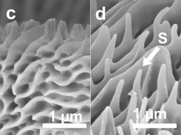 Bár más kígyók esetében eddig még nem figyeltek meg hasonló nanotrükköt, egy lepkefaj, a Papilio ulysses szárnyainak ultrafekete szegélye egy nagyon hasonló felületi mintázat eredménye: a nanoméretű kiemelkedések maguk is kisebb egyenetlenségekkel borítottak, amelyek még kisebb felületi mintákból épülnek fel.
