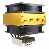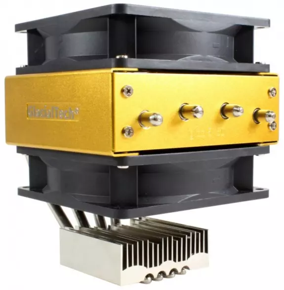 A különleges felépítéssel rendelkező hűtő 100 x 135 x 130 mm-es mérettel bír, súlya pedig nem kevesebb, mint 550 gramm. Az adott processzor által termelt hőt négy darab hőcső juttatja el az alumínium lamellákhoz. A hőcsövek egyébként egyenként 6mm-es átmérővel rendelkeznek. A nikkelezett réz talpazattal érkező újdonság két darab 92 mm-es átmérőjű ventilátort tartalmaz, amelyek közül az alsó a rendszer pillanatnyi terhelésétől függően a percenkénti 800-as és 1800-as közötti fordulatszám tartományban üzemel, míg a felső fix 1400-as percenkénti fordulatszámmal pörög.