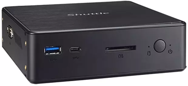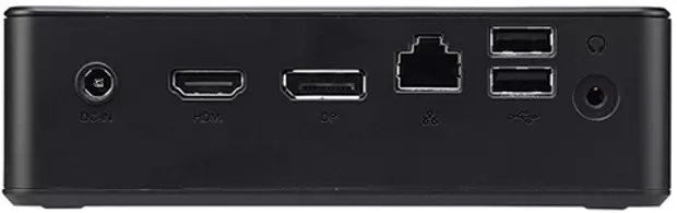 Az üzleti felhasználásra is alkalmas apróság fedélzetén RS232-es port is jelen van, ezen felül pedig egy HDMI és egy DisplayPort videó kimenetet, egy USB 3.0 Type-A és egy USB 3.0-s Type-C portot, valamint SD memóriakártya-olvasót, két USB 2.0-s portot és egy headset csatlakozót kínál. A tápellátást 65 wattos külső tápadapter biztosítja, a VESA rögzítő keret jóvoltából pedig akár monitor hátuljára, asztallap aljára vagy falra is felszerelhető a PC.