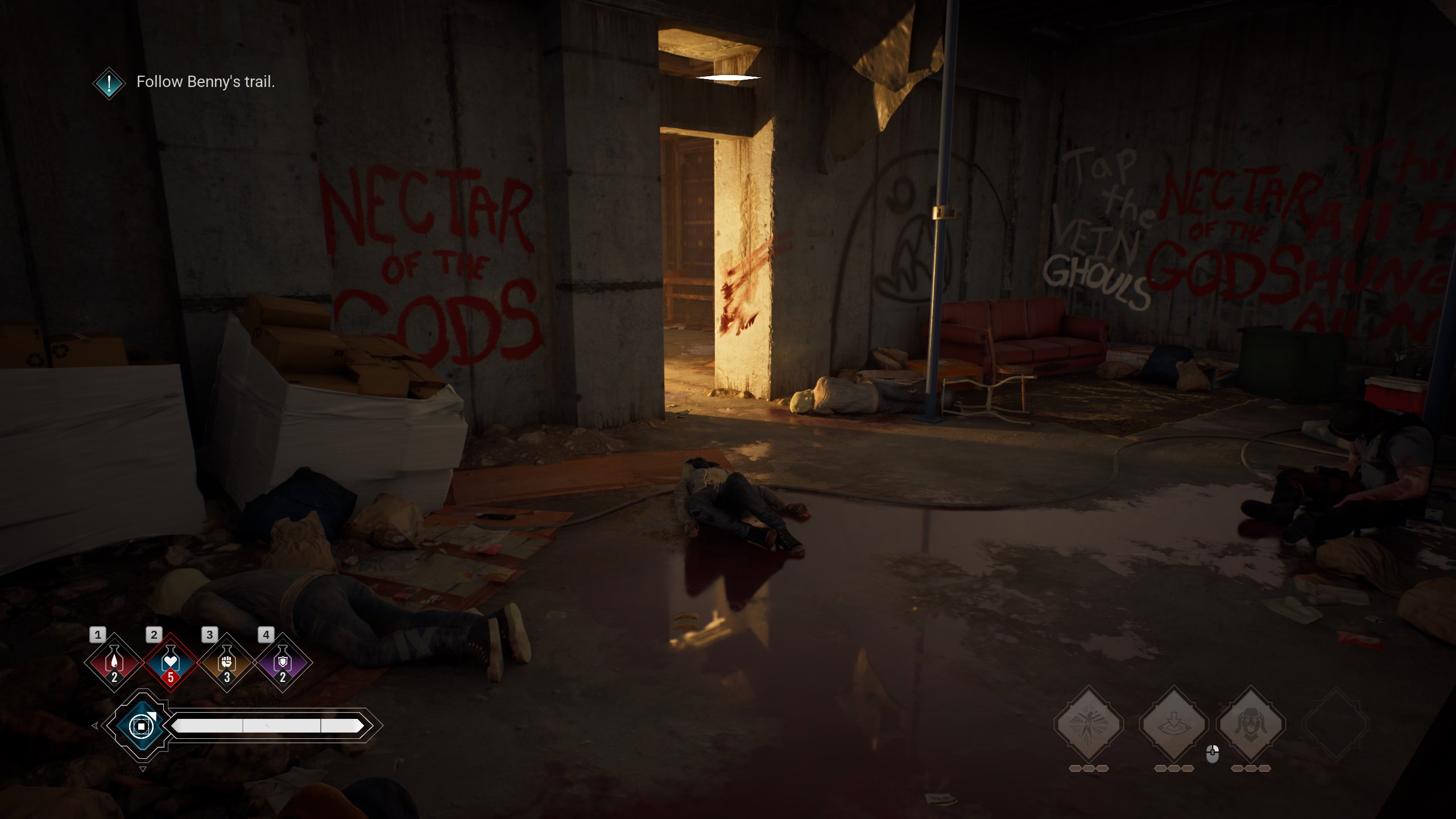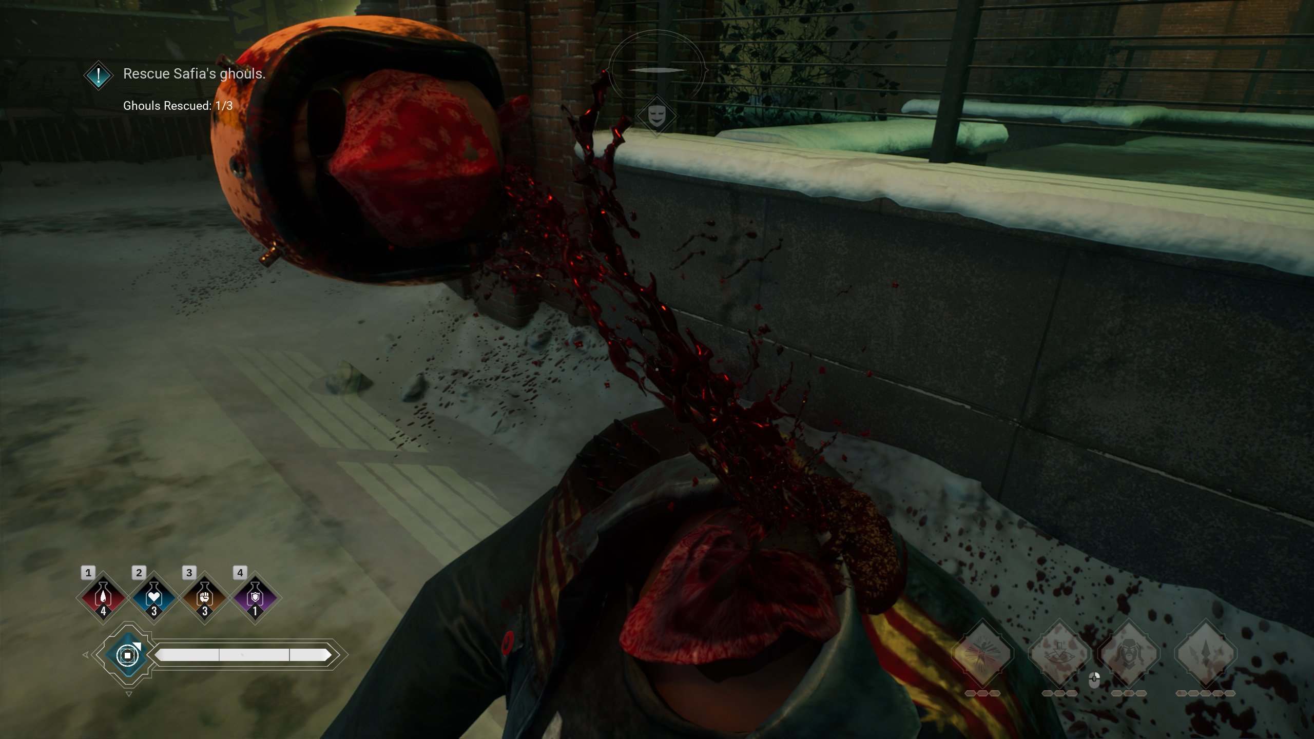 És hogy ne legyek teljesen igazságtalan a Bloodlines 2-vel, hozzá kell tenni, hogy a telekinézis nagyon is hasznos képesség, mert lőfegyvert vehetünk fel és használhatunk vele, téglákat, üres üvegeket, közelharci fegyvereket vághatunk ellenségeink fejéhez. Ez bossfightnál is hasznos, mert az első, komolyabb ilyen jellegű összecsapásnál menekülés és telekinézissel dobálás kombóval sikerült csak legyőzni egy nálam sokkal erősebb vámpírt. Nevetségessé tette kissé a harcot? Sablonossá? Igen. Én győztem a végén? Szintén igen.
