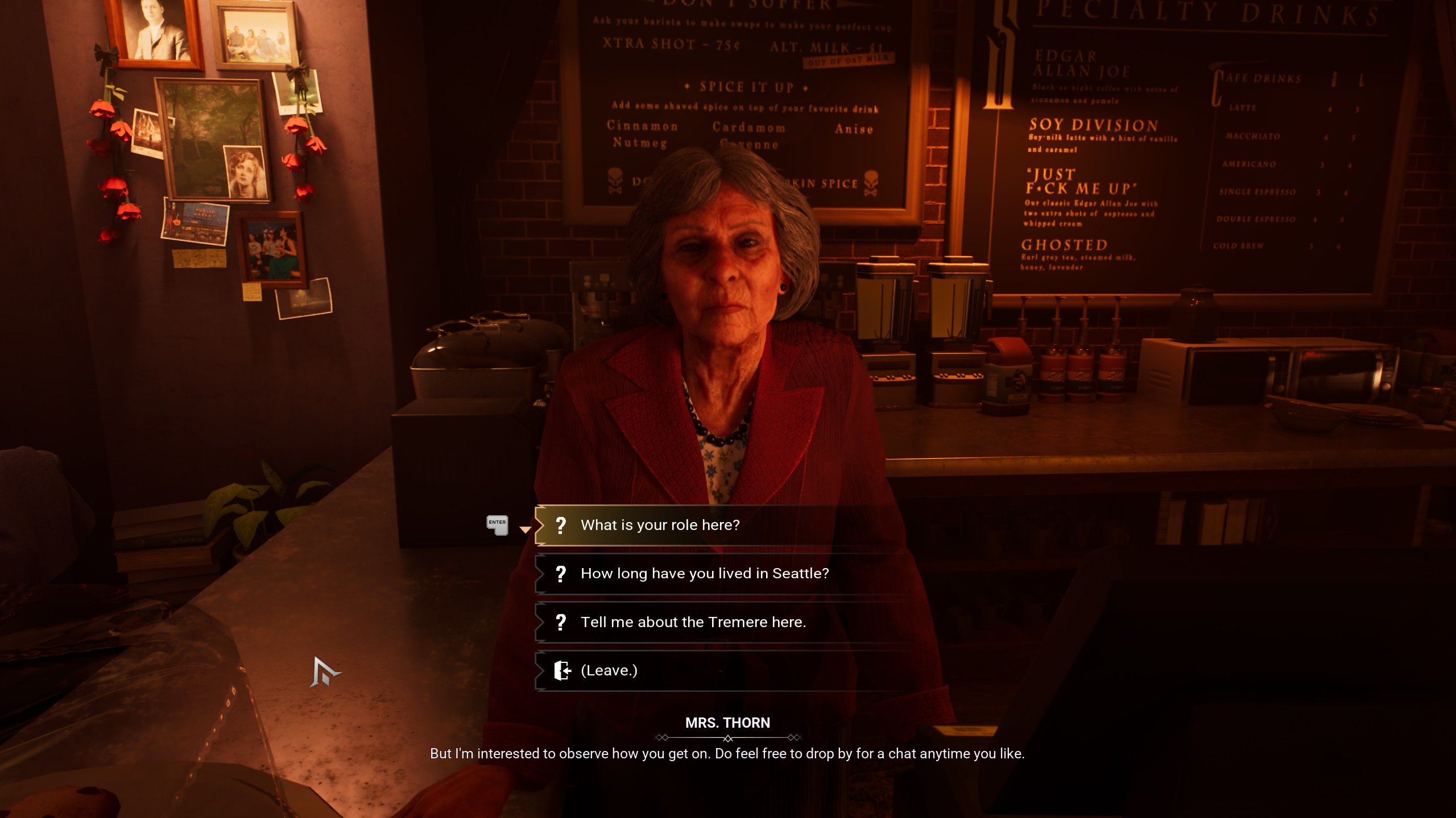 A helyszín Seattle és az előbb említettek miatt majdnem pay to win helyzetben lennénk erő tekintetében, ha nem lenne egy rejtélyes tetoválás/rajzolat a testünkön, ami mintha leblokkolná az erőnket. Emellé pedig egy felgöngyölítésre váló rejtélyt és egy fejünkben ragadt narrátort is kapunk Fabien, az 1920-as években „életre” hívott malkavita nyomozó személyében.