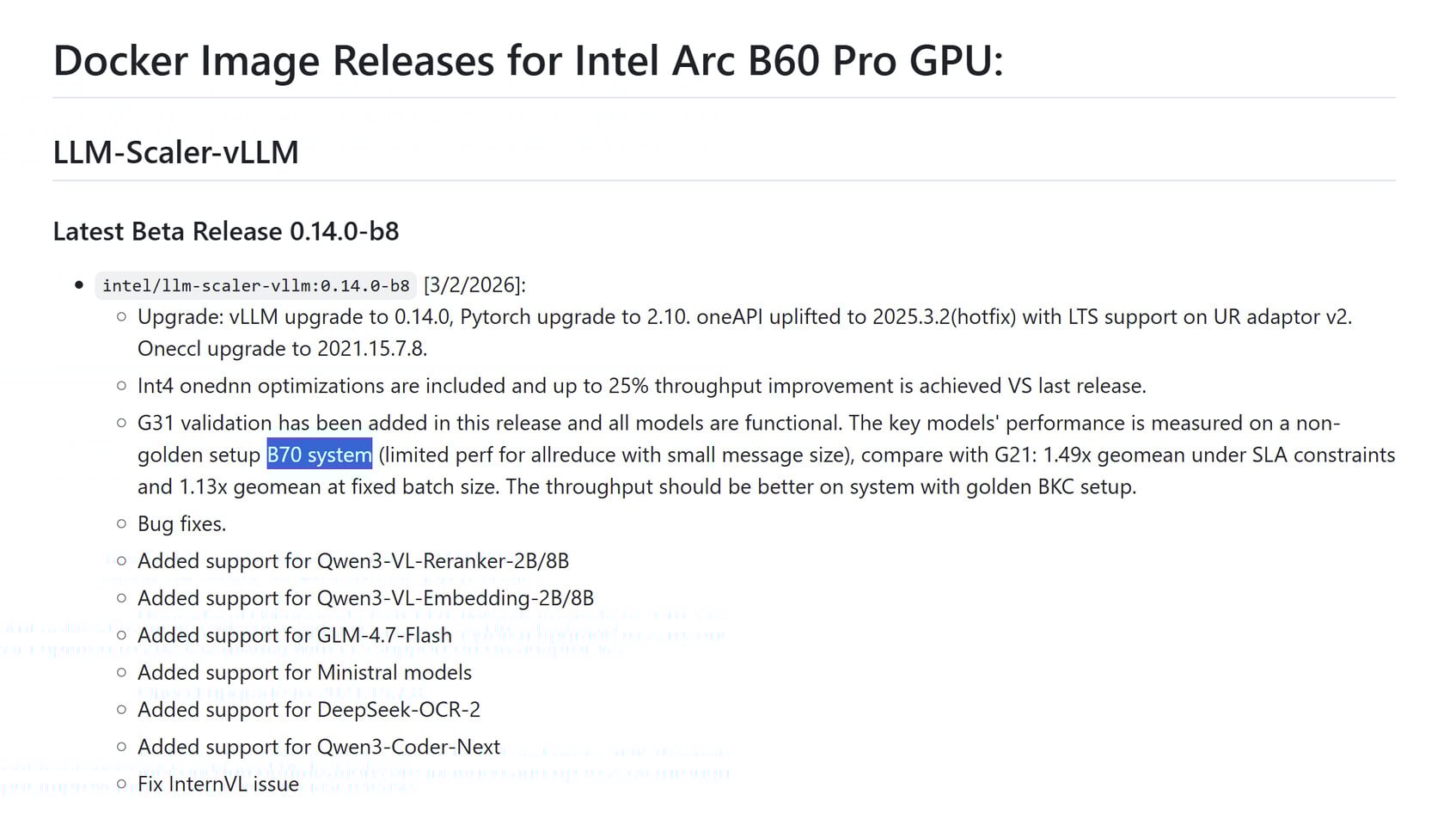 Az Intel Arc Pro B70-es és az Intel Arc Pro B65-ös videokártyákat várhatóan még ebben a negyedévben bemutatja a vállalat, de a termékek létezésére már most is utalnak jelek: az LLM Scaler leírásában szerepel a B70-es modell, valamint a B65-ösre is vannak utalások, sőt, az sincs kizárva, hogy mindkét videokártyából készülnek majd speciális, két GPU-val szerelt verziók is.