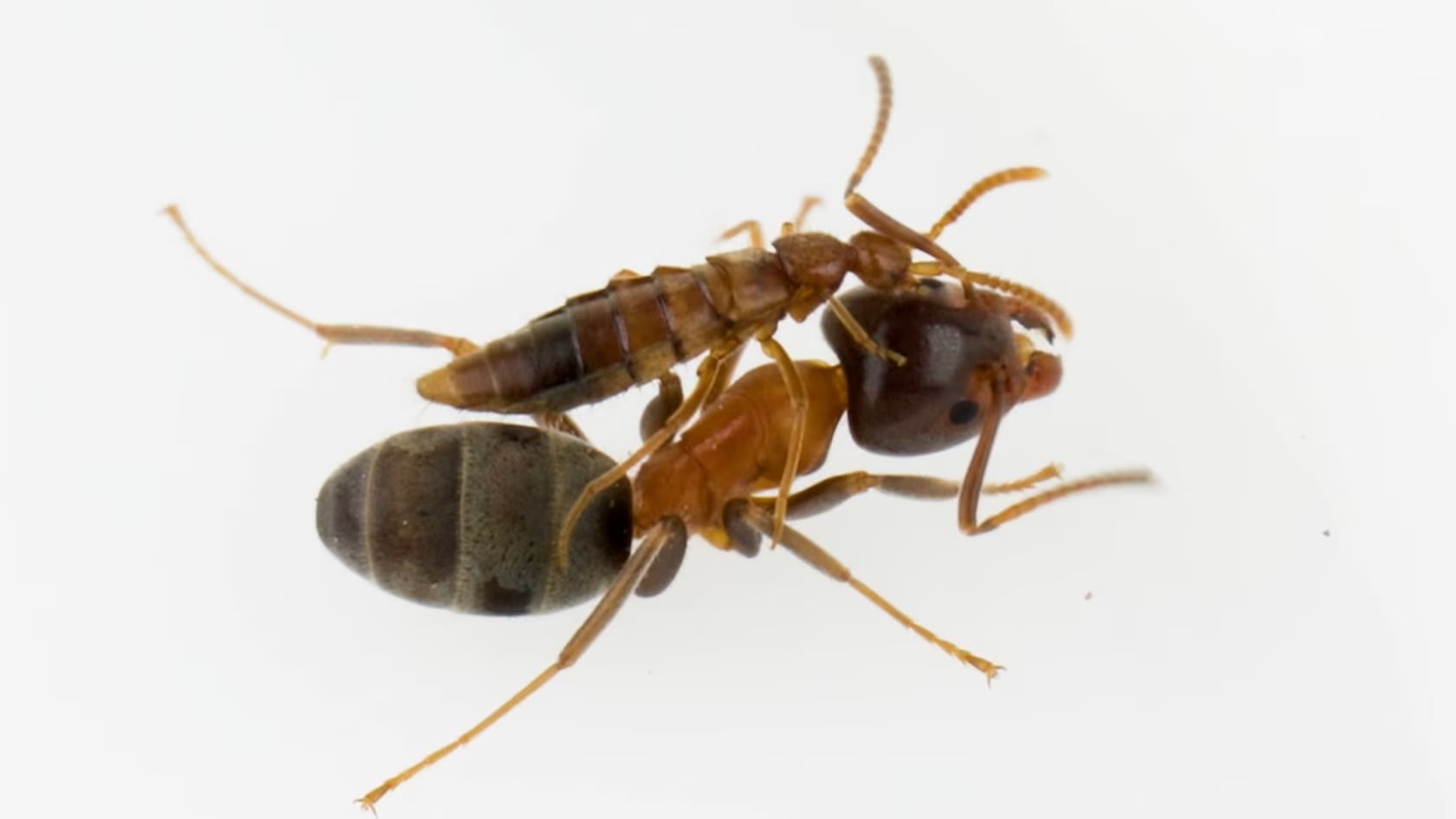 Hogy ezt a szimbiózist közelről tanulmányozhassák, Joe Parker, a CalTech evolúciós biológusának és csapatának mindössze 20 percet kell utaznia laboratóriumától addig az erdőig, ahol számos bársonyos fahangya (Liometopum occidentale) kolóniája él számtalan más rovarfajjal együtt. Az egyikük, a Sceptobius lativentris nevű holyvaféle békésen megbújik a kolóniákban, és csak akkor távozik, amikor a nősténynek a közeli talajba kell petéit lerakni. A peték kikelése után az utódok rögtön a legközelebbi hangyaboly felé indulnak, hogy beköltözzenek.