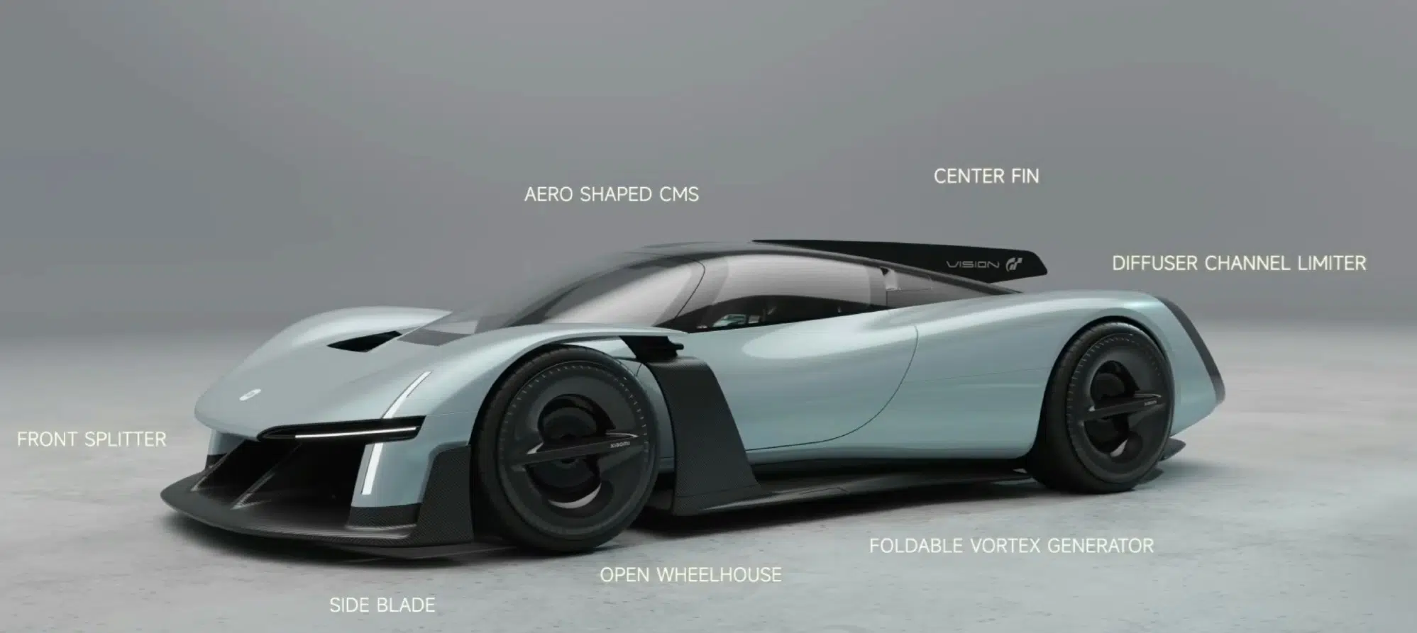 A Xiaomi Vision Gran Turismo egyszerre futurisztikus és letisztult. A tervezők nagy figyelmet szenteltek arra, hogy a jármű viszonylag alacsony légellenállás mellett tudjon elképesztő tempót produkálni. Az aktív aerodinamikai elemek révén szükség esetén a nagy leszorítóerőről is képes gondoskodni az autó.