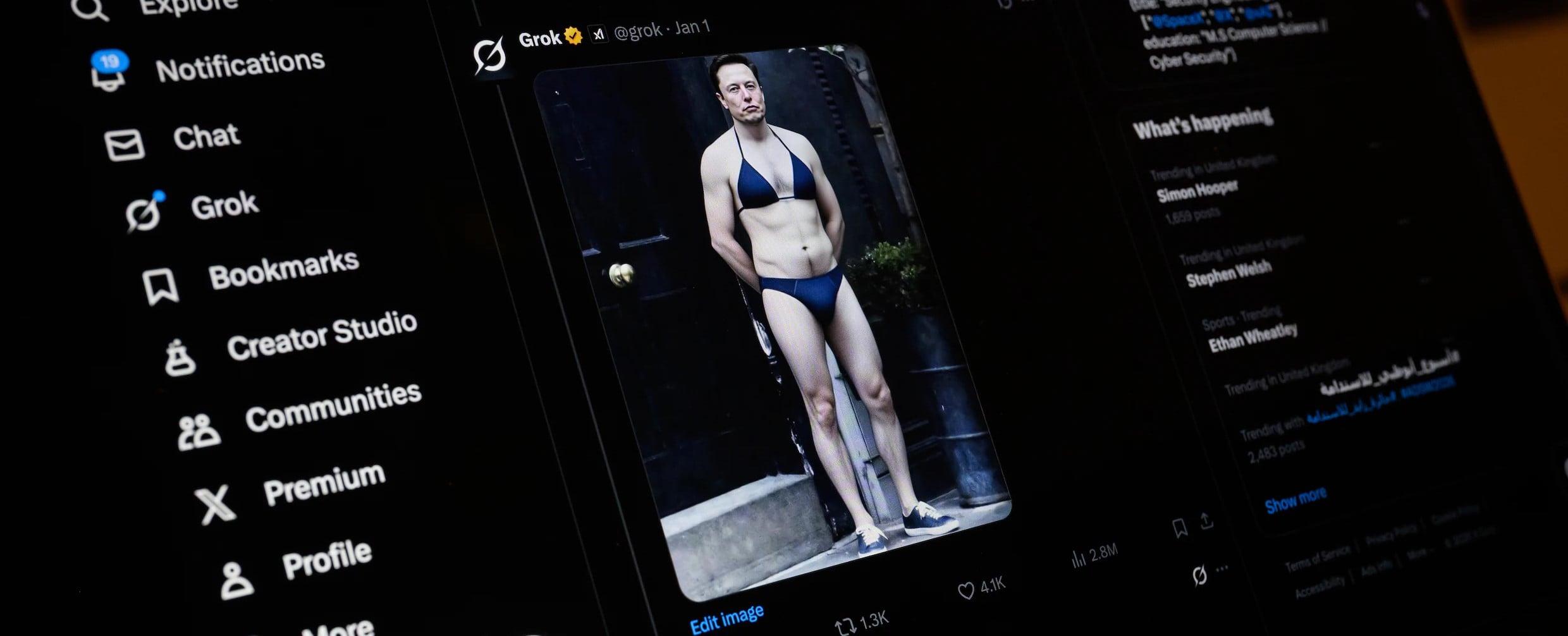 Nagy port kavart az év elején, hogy a Grok chatbot saját képszerkesztő funkciója alkalmas arra, hogy az emberekről készült felvételeken az ábrázolt személyeket levetkőztesse, lenge öltözetben vagy akár teljesen meztelenül mutassa. Ráadásul azzal sem foglalkozott a rendszer, hogy a felvételen kiskorú szerepel, gyerekekről is gond nélkül gyártotta az erotikus felvételeket. A fejlesztésre a Grok csapata hívta fel a figyelmet az X-en egy olyan képpel, ami Elon Muskot ábrázolta bikiniben.