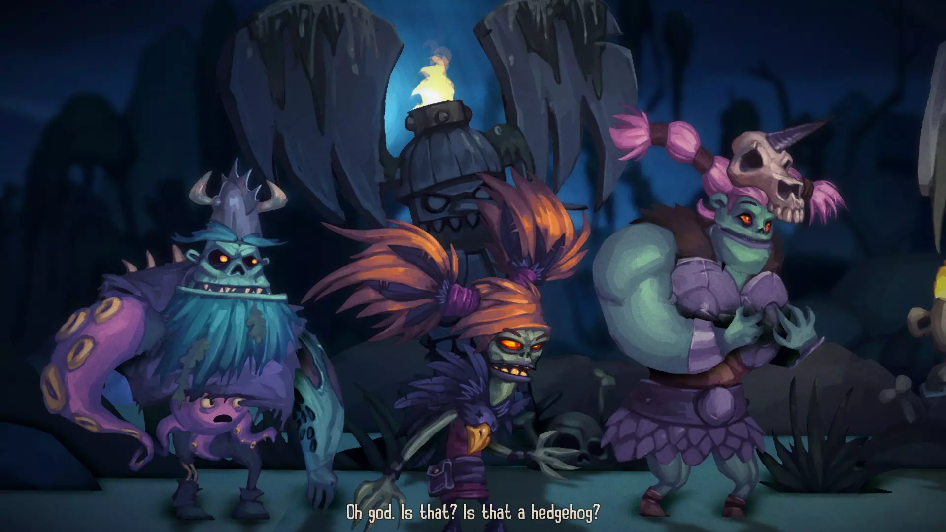 Négy eltérő képességű, de egyaránt mókás karakterrel kezdhetjük el a szent küldetést. Van itt kérem minden! Polipcsápos nagydarab harcos (Seagurd), még nagyobb darab vikingnő (Gunborg), madárral keresztezett kisebb hölgy (Caw-Kaa) és egy… sünnel keresztezett, valami (Hedgy). A Psychonaustból is bedobtak egy karaktert DLC formájában a játékba, ő persze opcionális és fizetős. Harcosunk mellé felszerelést is választhatunk, ha már gyűjtöttünk egy kis vagyont. Addig kénytelen leszünk beérni az alapfegyverrel, valamint az alap rúnakővel, ami nevéhez méltóan (Rune of Nothing) semmit nem ad, de legalább a miénk. Az is jó dolog… azt hiszem. Később életerő növelő varázskövünk is lehet azért.