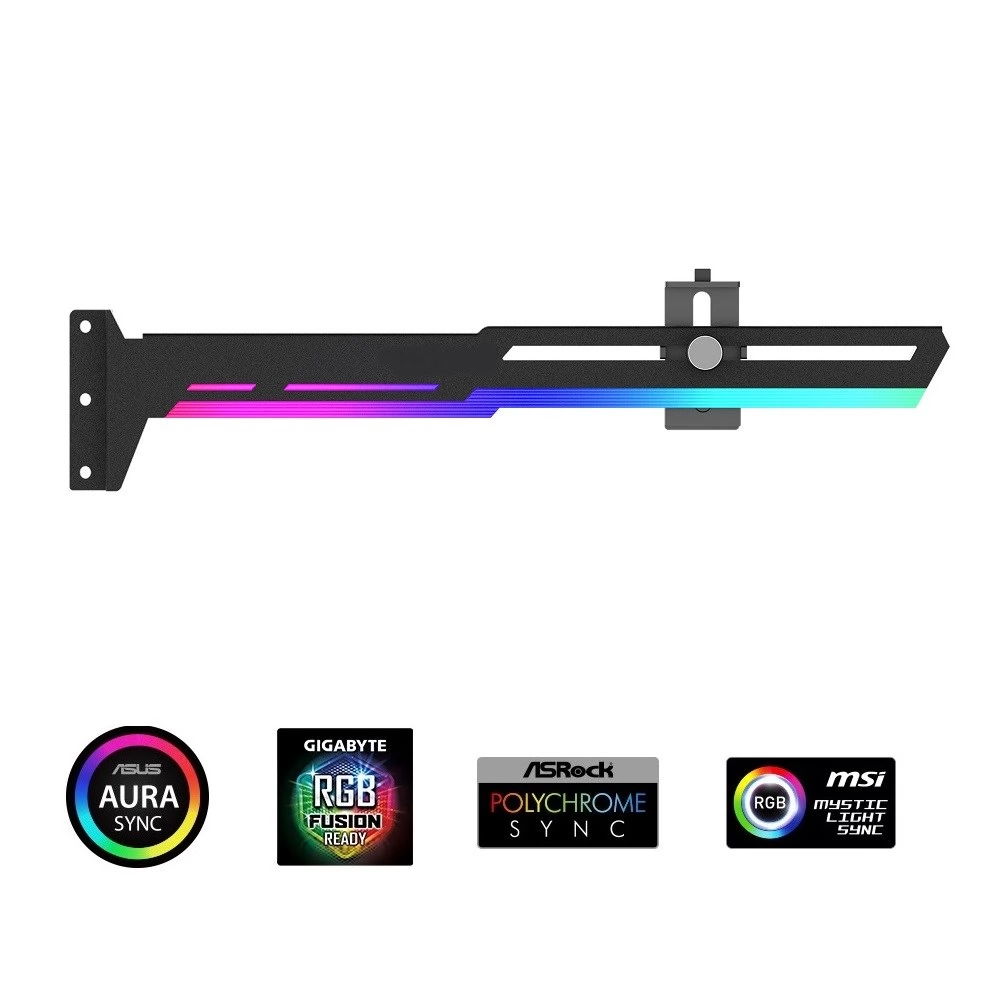 A grafikus kártya tartójának stílusos változata porszórt acéllemezből és műanyagból készült, megakadályozza a nagyobb kártyák meghajlását a nyílásban, így jobb általános stabilitást biztosít. Tartalmaz egy szilikon csúszó tartót, amely vízszintesen és függőlegesen is mozgatható, és lehetővé teszi a kártya különböző helyeire történő beszerelést, maximális kompatibilitást biztosítva a legtöbb kártyával.