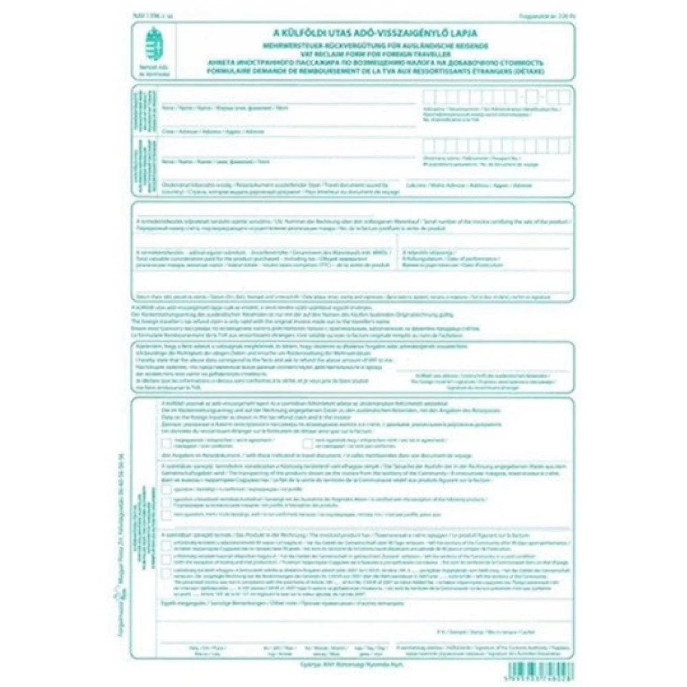 - A külföldi utas által visszaigényelhető áfához való nyomtatvány