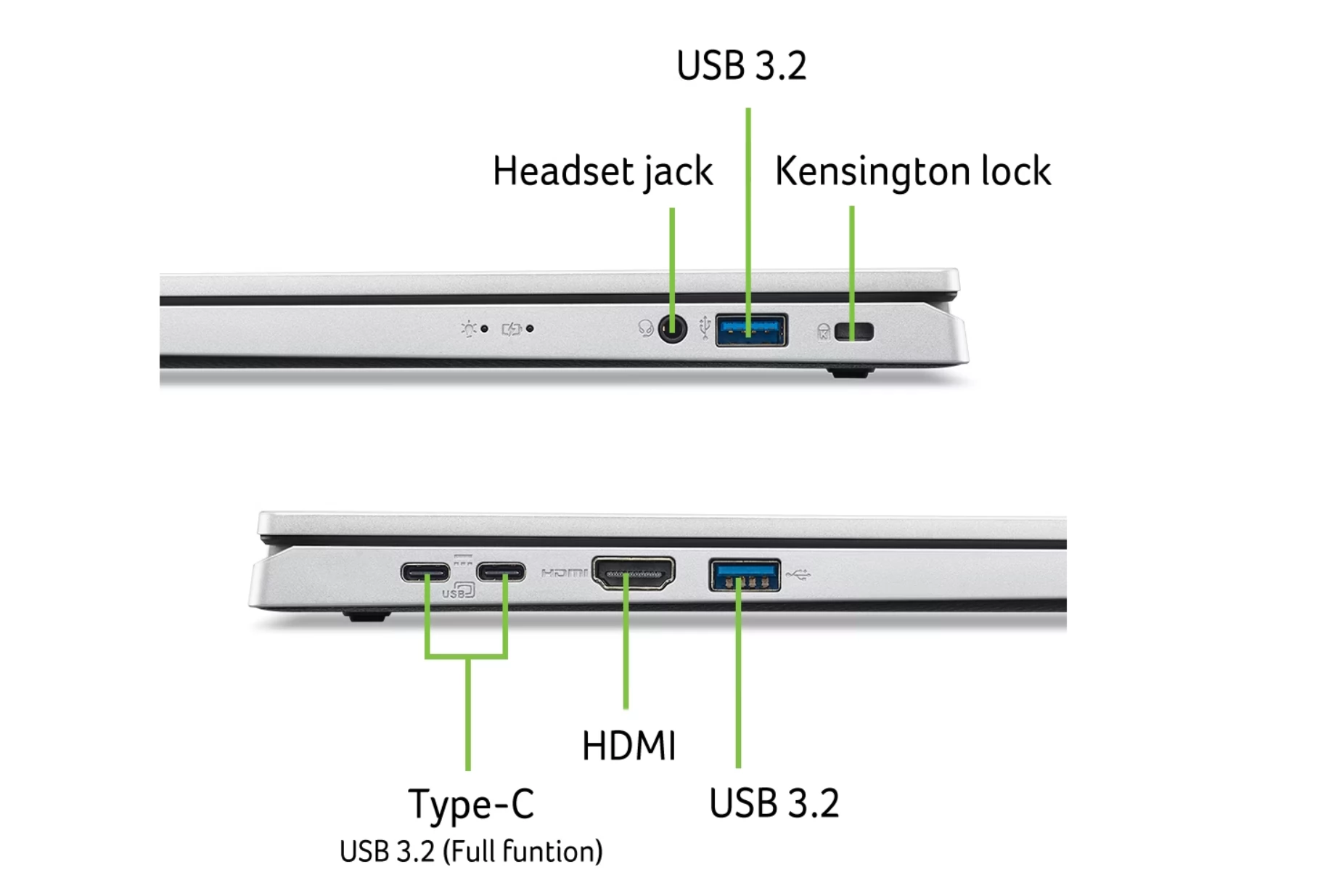 ACER notebook Intel N150 processzorral, 8GB Notebook DDR5 (SO-DIMM) memóriával, 15.6”-es kijelzővel, 512GB SSD meghajtóval, FreeDOS operációs rendszerrel, Intel Graphics integrált videokártyával.