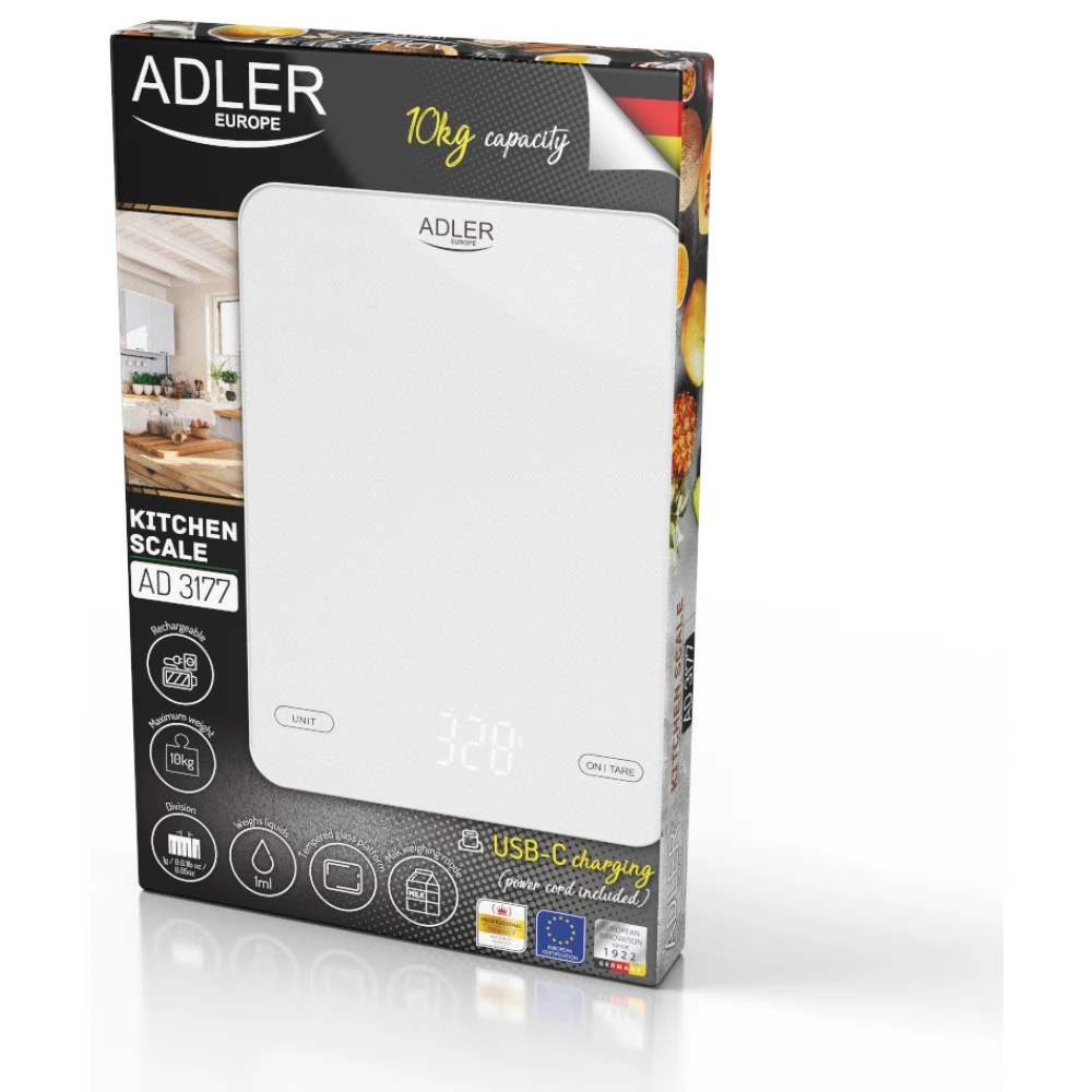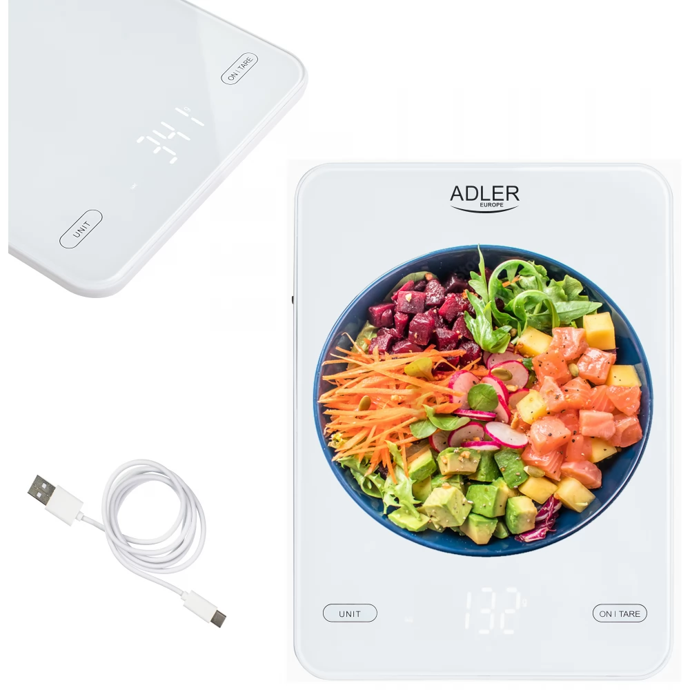ADLER AD 3177w Konyhai mérleg 10kg USB töltéssel fehér