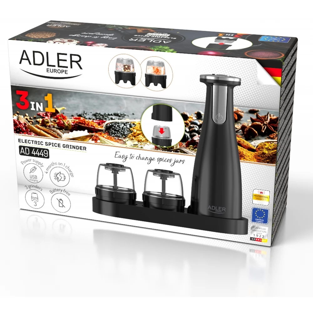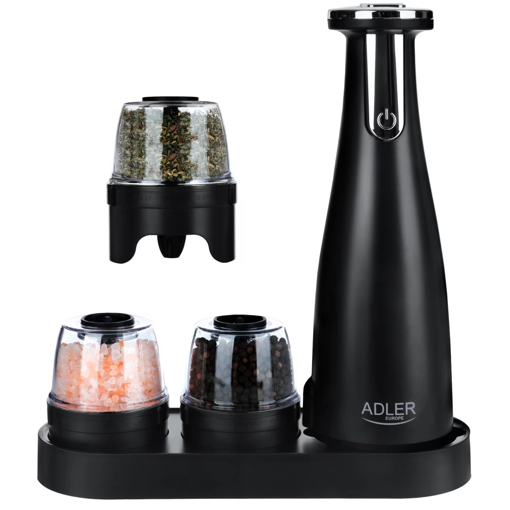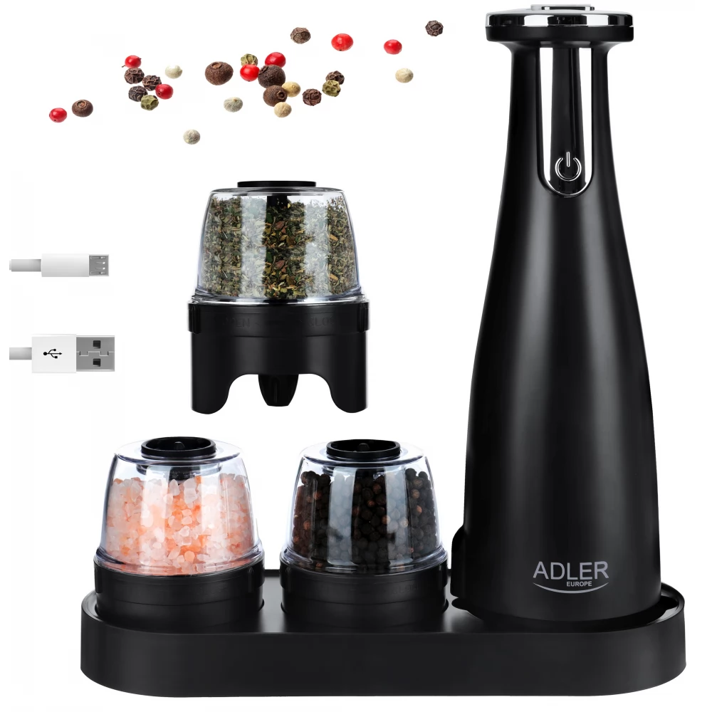 ADLER AD 4449b Elektromos só- és borsőrlő készlet 3 őrlő USB fekete
