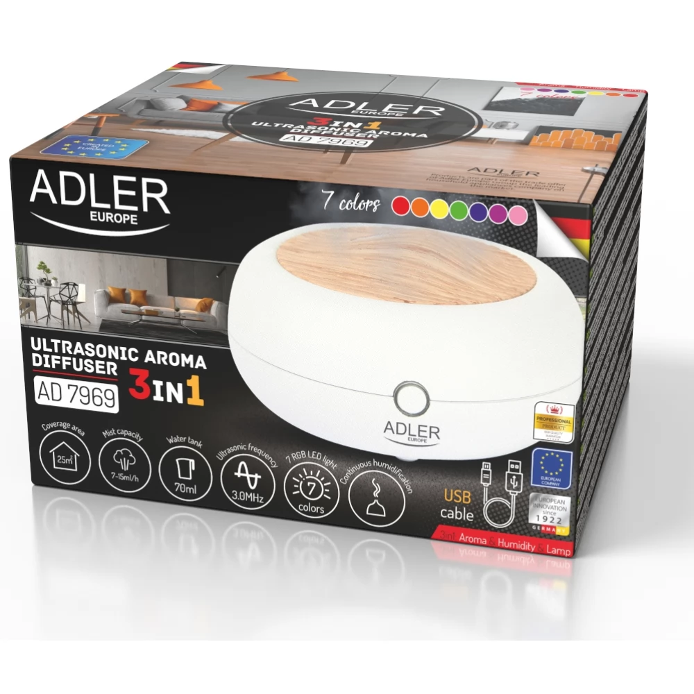 ADLER AD 7969 USB 3az1-ben ultrasonicus aroma diffusor fehér