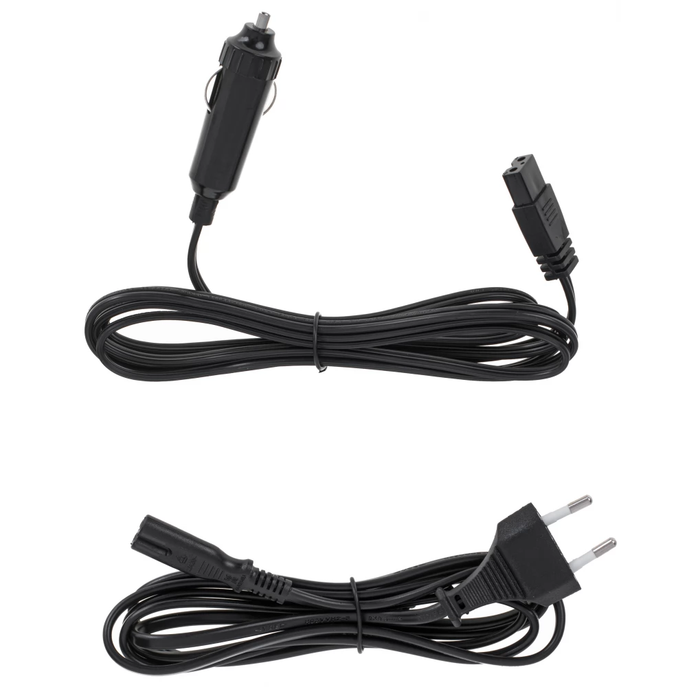 - A készlet tartalmaz tápkábeleket a hűtőtáska DC 12V-os aljzathoz és AC 220-240V-os aljzathoz való csatlakoztatásához