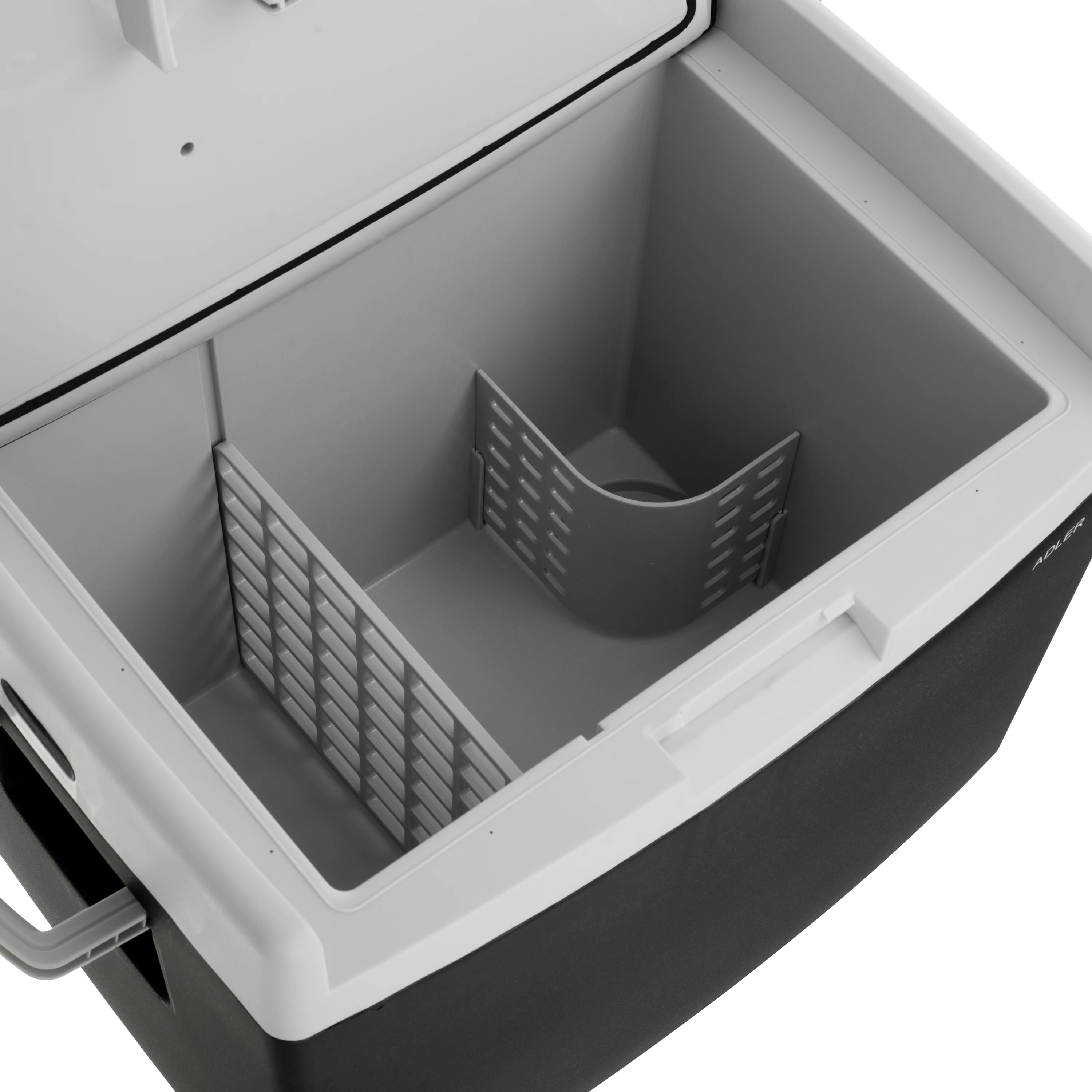 - A kamra kivehető válaszfallal és palacktartóval van ellátva, amely biztosítja az ételek stabilitását szállítás közben