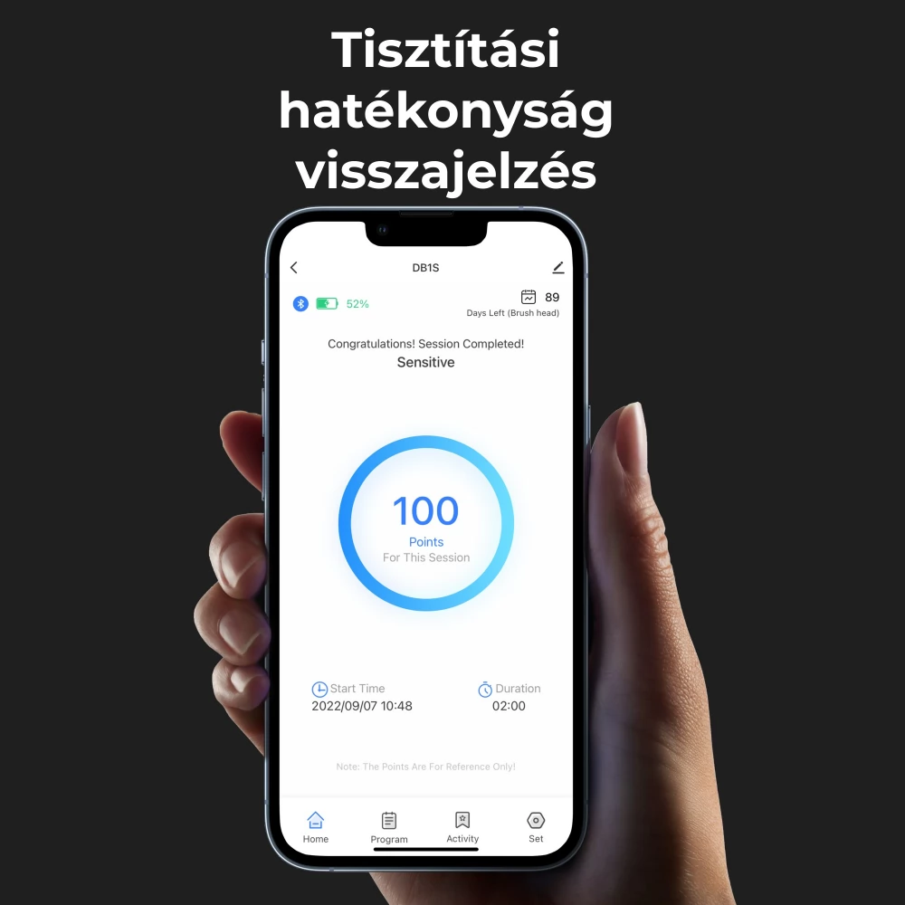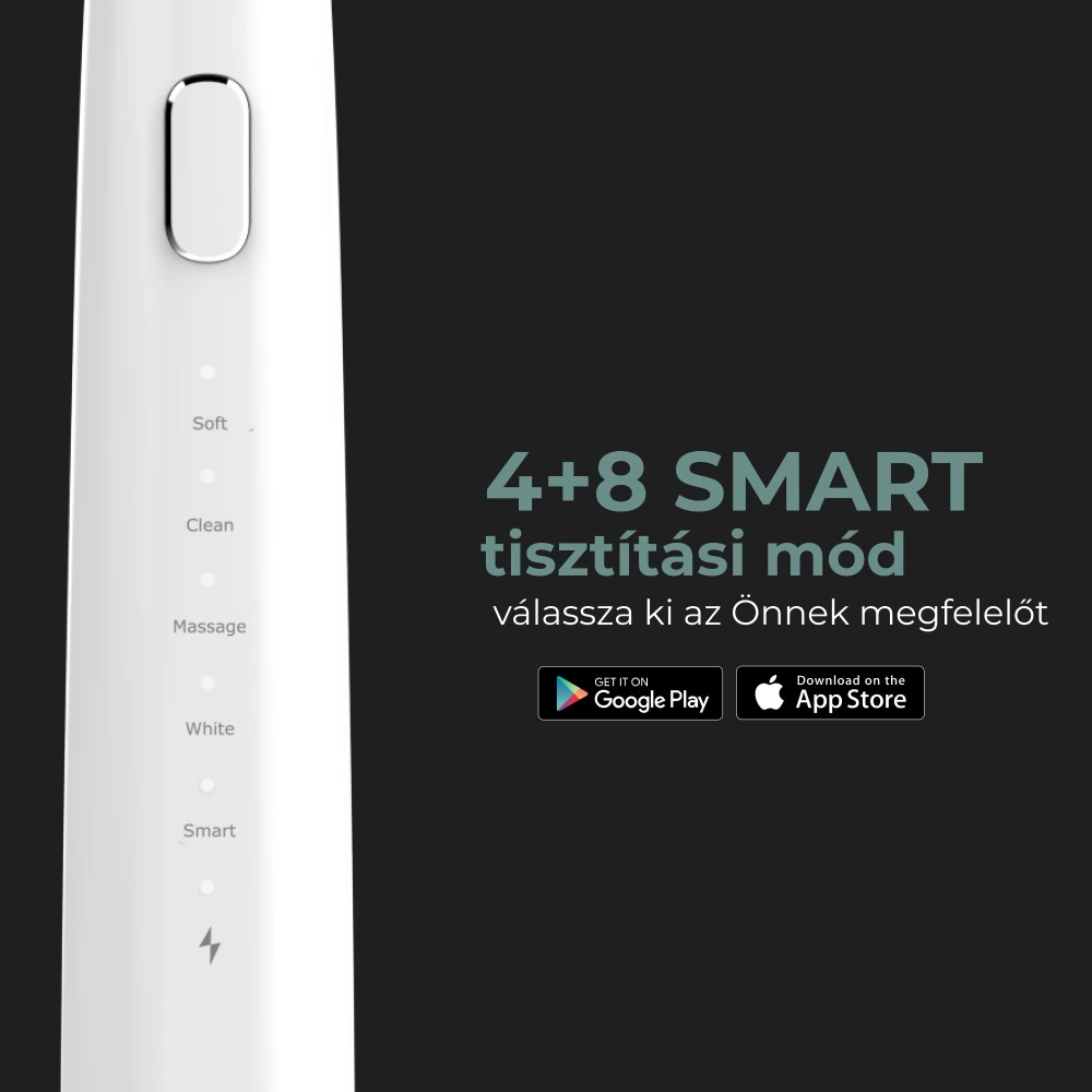 - Jellemzők: 10x hatékonyabb, mint a kézi kefe 46 000 magas rezgés percenként: Fast Sonic technológia a jobb tisztításért Emlékeztető a kefefej cseréjéhez: vegyél újat, amikor a sörték kifehérednek Ideális érzékeny fogínyekhez, fogszabályzókhoz, fogászati implantátumokhoz Kényelmes vezeték nélküli töltőés tárolóállomás Kefefejek minden családtagnak: csak válassza ki az ikonját Dupont prémium minőségű sörték zuhany biztonságos használat: IPX7 vízálló Hosszú élettartamú anyagok: színvesztés elleni védelem és fémrúd Többszörös ápolás: puha, tiszta, masszázs, fehér + SMART Többszörös tisztítási forgatókönyvek: válassza ki a kívántat egy Válasszon egyet a 4 sebesség közül az alkalmazás során. Válassza ki a megfelelő tisztítási időtartamot az alkalmazás során: 30 mp, 1 perc, 1,5 perc, 2,0 perc egy területre 6 lehetséges lépés/terület Válassza ki a megfelelő intenzitást az alkalmazás során:4 intenzitás 15/30 másodperces fogászati zónaváltás emlékeztető Vigye magával keféjét utazáshoz töltőállomás nélkül Akár 90 napig töltés nélkül. Tartalma: 3 kefefej, vezeték nélküli töltőállomás Akkumulátor töltöttségi szint jelzés az alkalmazásban Csúszásgátló és puha tapintású felület Smart App: kézi beállítások (idő, intenzitás, gyakoriság) Smart App: fogmosás előzményei és hatékonysága Smart App: további előre beállított tisztítási módok Smart App: kefefejcsere értesítés Smart App: ajánlások a fogászati állapot alapján Smart App: valós idejű visszajelzés a tisztítás hatékonyságárólfogmosás előzményei és hatékonysága Smart App: további előre beállított tisztítási módok Smart App: kefefejcsere értesítés Smart App: ajánlások a fogászati állapot alapján Smart App: valós idejű visszajelzés a tisztítás hatékonyságárólfogmosás előzményei és hatékonysága Smart App: további előre beállított tisztítási módok Smart App: kefefejcsere értesítés Smart App: ajánlások a fogászati állapot alapján Smart App: valós idejű visszajelzés a tisztítás hatékonyságáról