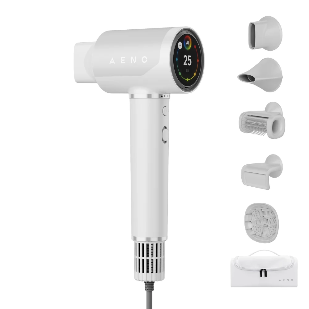 Az AENO HD5 öt cserélhető mágneses fúvókát tartalmaz, amelyek könnyedén csatlakoztathatók a hajszárítóhoz: formázó fúvóka (a haj kiegyenesítésére és összetett frizurák készítésére tervezték), gyors szárító fúvóka (a haj gyors és egyenletes szárítására tervezték), coanda hatású tartozék (a rakoncátlan haj kiegyenesítésére tervezték), kefe tartozék (a haj simábbá tételére tervezték), diffúzor tartozék (a göndör és hullámos haj formázására tervezték)