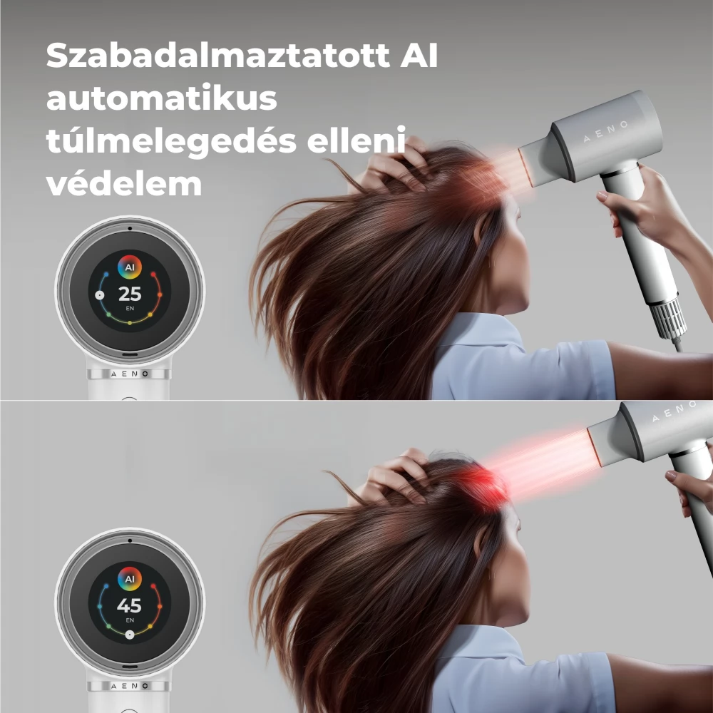 A hajszárító folyamatosan figyeli a hajtól való távolságot, és automatikusan állítja a hőmérsékletet a beállított célt hőmérséklet függvényében. Mivel a hajtól való távolság változásával azonos légáram hőmérséklet különböző hőmérsékleteket eredményezhet a hajon, ez az intelligens vezérlés megakadályozza a túlzott hőt, biztosítva a hatékony szárítást, minimalizálva a károsodás kockázatát, és fenntartva az optimális formázási körülményeket