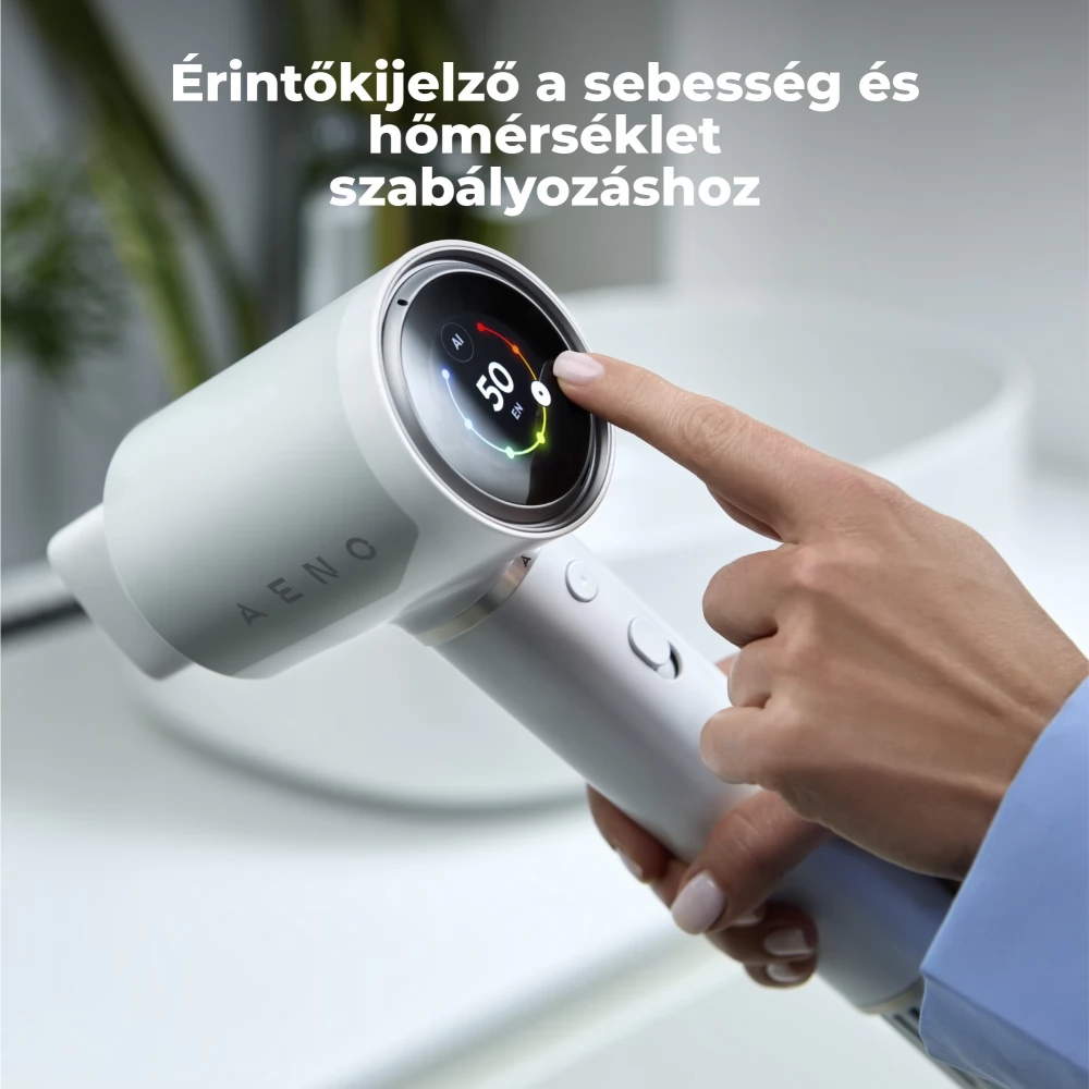 Az intuitív érintőképernyős felület lehetővé teszi a hőmérséklet egyszerű beállítását egyetlen érintéssel vagy simítással. Ez a digitális vezérlőrendszer világos és azonnali visszajelzést ad, így könnyedén finomhangolhatja a szárítási élményt, hogy az megfeleljen hajtípusának és formázási preferenciáinak