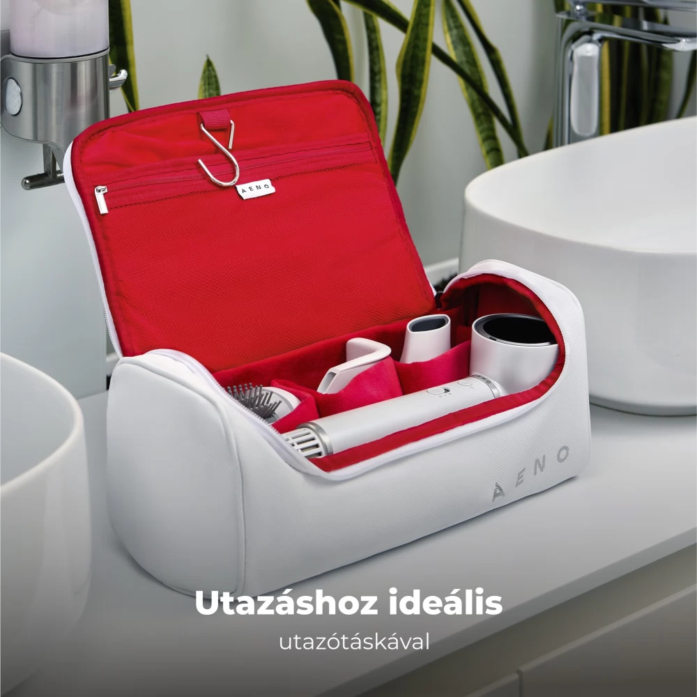 Az AENO HD5 készülékhez egy speciálisan kialakított utazótáska tartozik, amely megkönnyíti a tárolást és szállítást. A kényelmes rekeszek az összes tartozék és a hajszárító számára tökéletes ergonómiát biztosítanak a használathoz és a tároláshoz