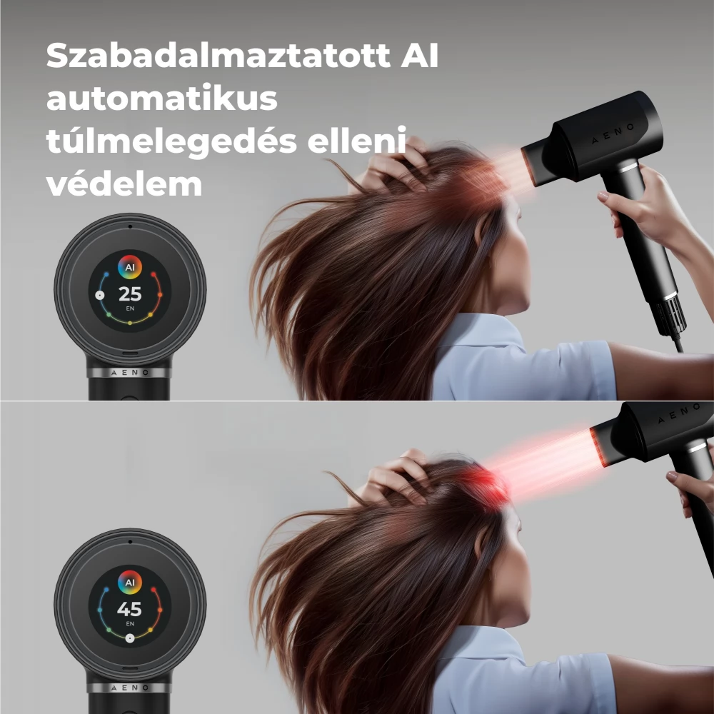 A hajszárító folyamatosan figyeli a hajtól való távolságot, és automatikusan állítja a hőmérsékletet a beállított célt hőmérséklet függvényében. Mivel a hajtól való távolság változásával azonos légáram hőmérséklet különböző hőmérsékleteket eredményezhet a hajon, ez az intelligens vezérlés megakadályozza a túlzott hőt, biztosítva a hatékony szárítást, minimalizálva a károsodás kockázatát, és fenntartva az optimális formázási körülményeket