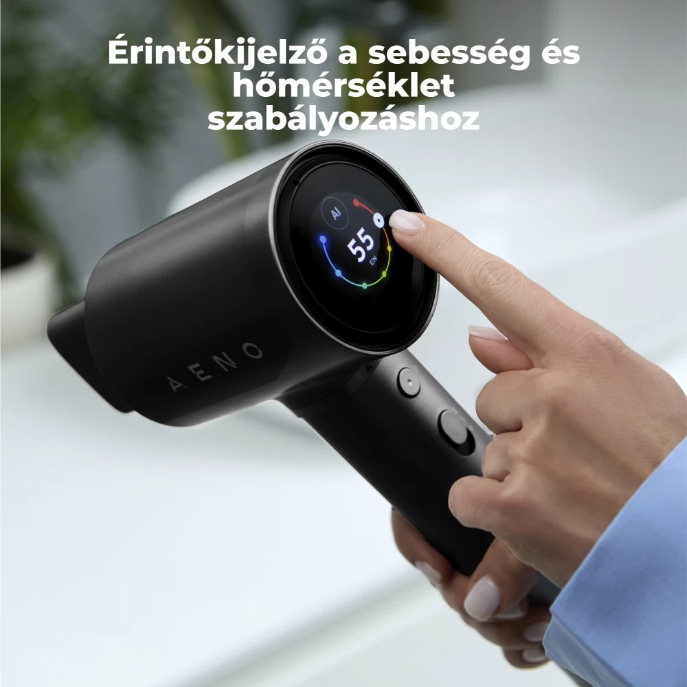 Az intuitív érintőképernyős felület lehetővé teszi a hőmérséklet egyszerű beállítását egyetlen érintéssel vagy simítással. Ez a digitális vezérlőrendszer világos és azonnali visszajelzést ad, így könnyedén finomhangolhatja a szárítási élményt, hogy az megfeleljen hajtípusának és formázási preferenciáinak