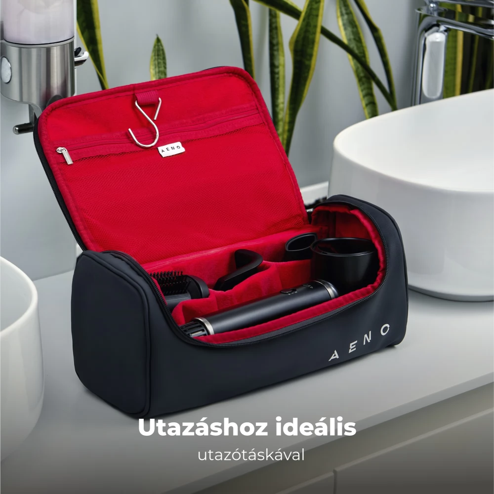 Az AENO HD5 készülékhez egy speciálisan kialakított utazótáska tartozik, amely megkönnyíti a tárolást és szállítást. A kényelmes rekeszek az összes tartozék és a hajszárító számára tökéletes ergonómiát biztosítanak a használathoz és a tároláshoz