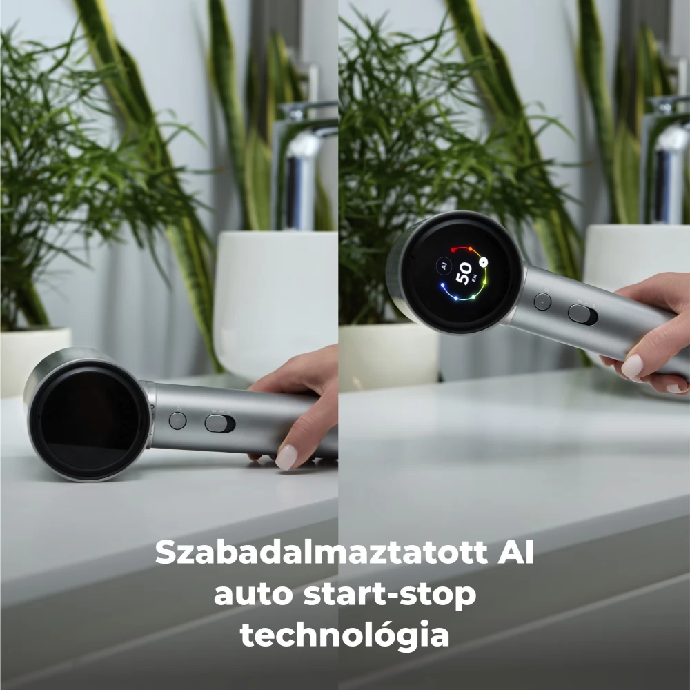 Ez az innovatív funkció automatikusan érzékeli, amikor a hajszárítót leteszi szárítás vagy formázás közben, és automatikusan kikapcsolja a légáramot. Amikor újra felemeli a hajszárító automatikusan újraindul. Ez lehetővé teszi a kényelmes szüneteket a készülék használata során. Az energia csak akkor kerül felhasználásra, amikor szükséges, meghosszabbítva ezzel a készülék élettartamát, és biztosítva a zavartalan működést, amely valós időben alkalmazkodik mindennapi rutinjához