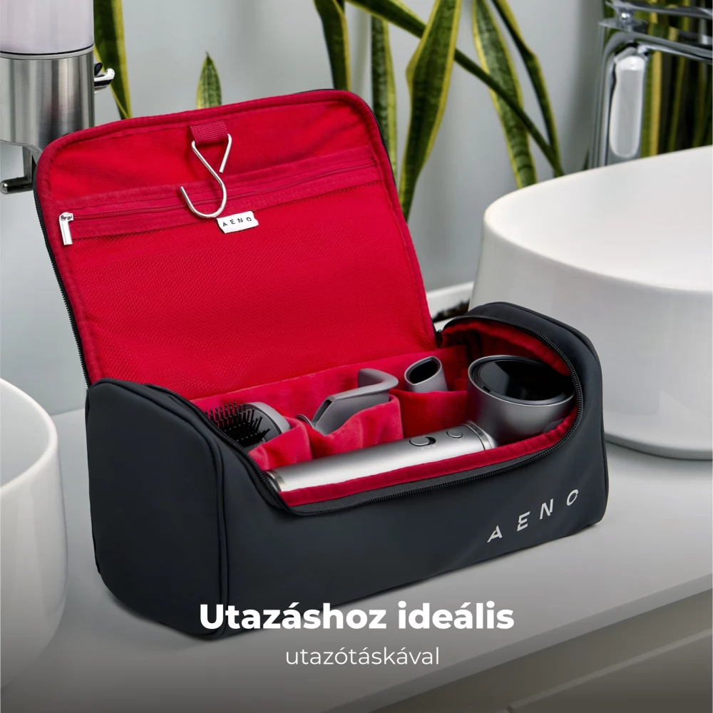 Az AENO HD5 készülékhez egy speciálisan kialakított utazótáska tartozik, amely megkönnyíti a tárolást és szállítást. A kényelmes rekeszek az összes tartozék és a hajszárító számára tökéletes ergonómiát biztosítanak a használathoz és a tároláshoz