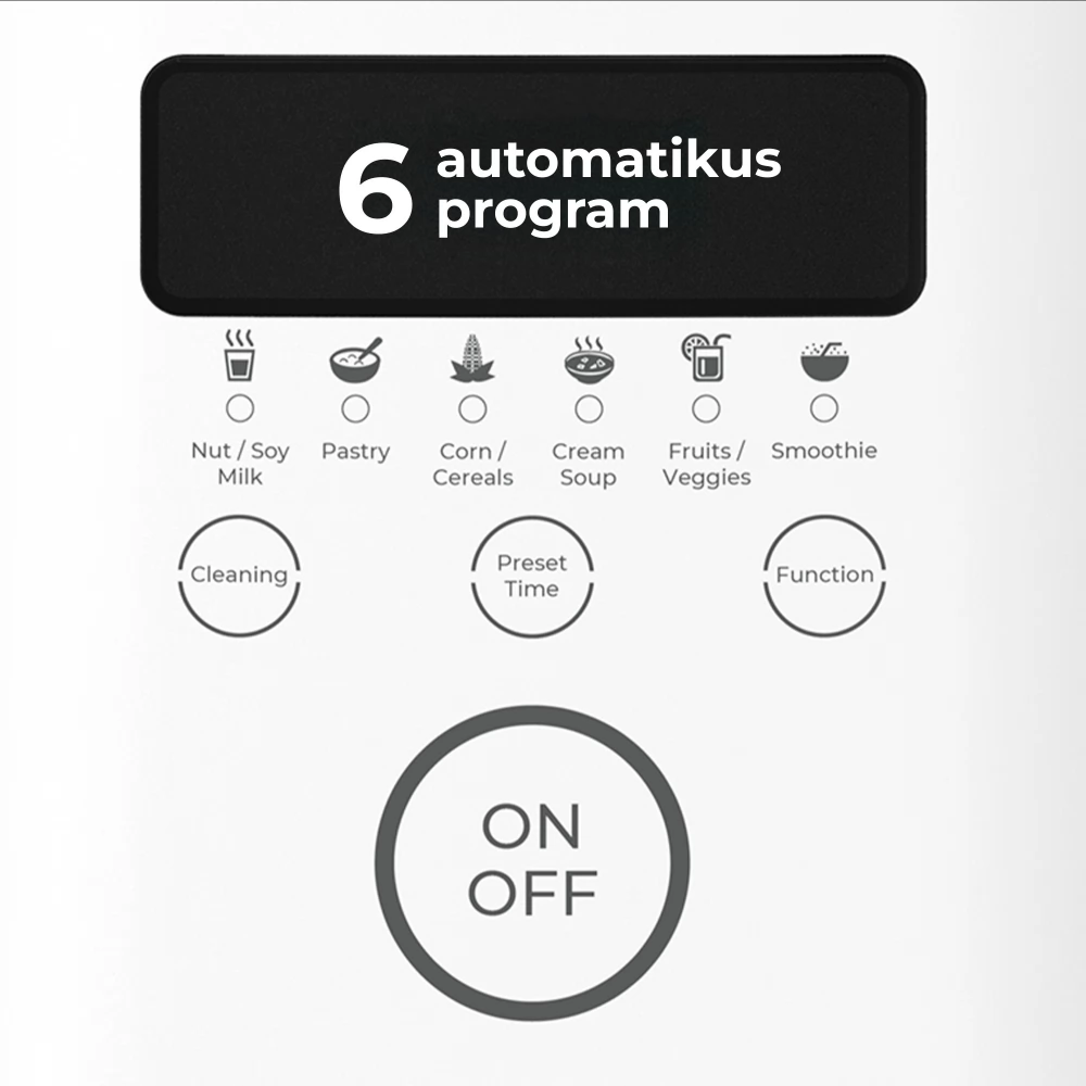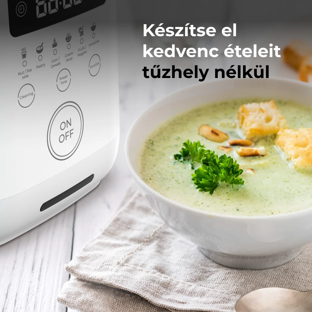 A turmixgép nemcsak darál, hanem különböző ételek főzését is lehetővé teszi, mint egy hagyományos lábasban. Csak tegye bele az ételt, állítsa be a kívánt üzemmódot, nyomja meg a Start gombot, és várjon, amíg elkészül. A krémleves vagy zabkása készítése még sosem volt ilyen egyszerű.
