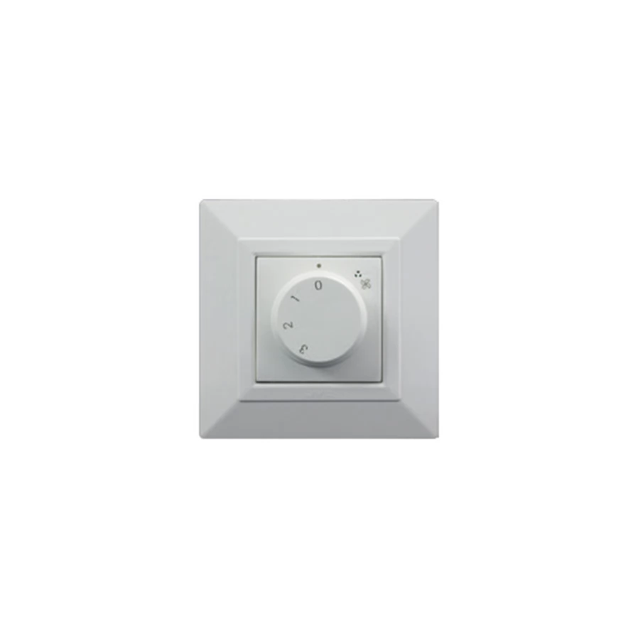 Három sebességi fokozat kiválasztására alkalmas szabályzó egység 3 fokozatú szellőztető készülékekhez, falsíkra szerelhető (nem süllyesztett) kivitelben.